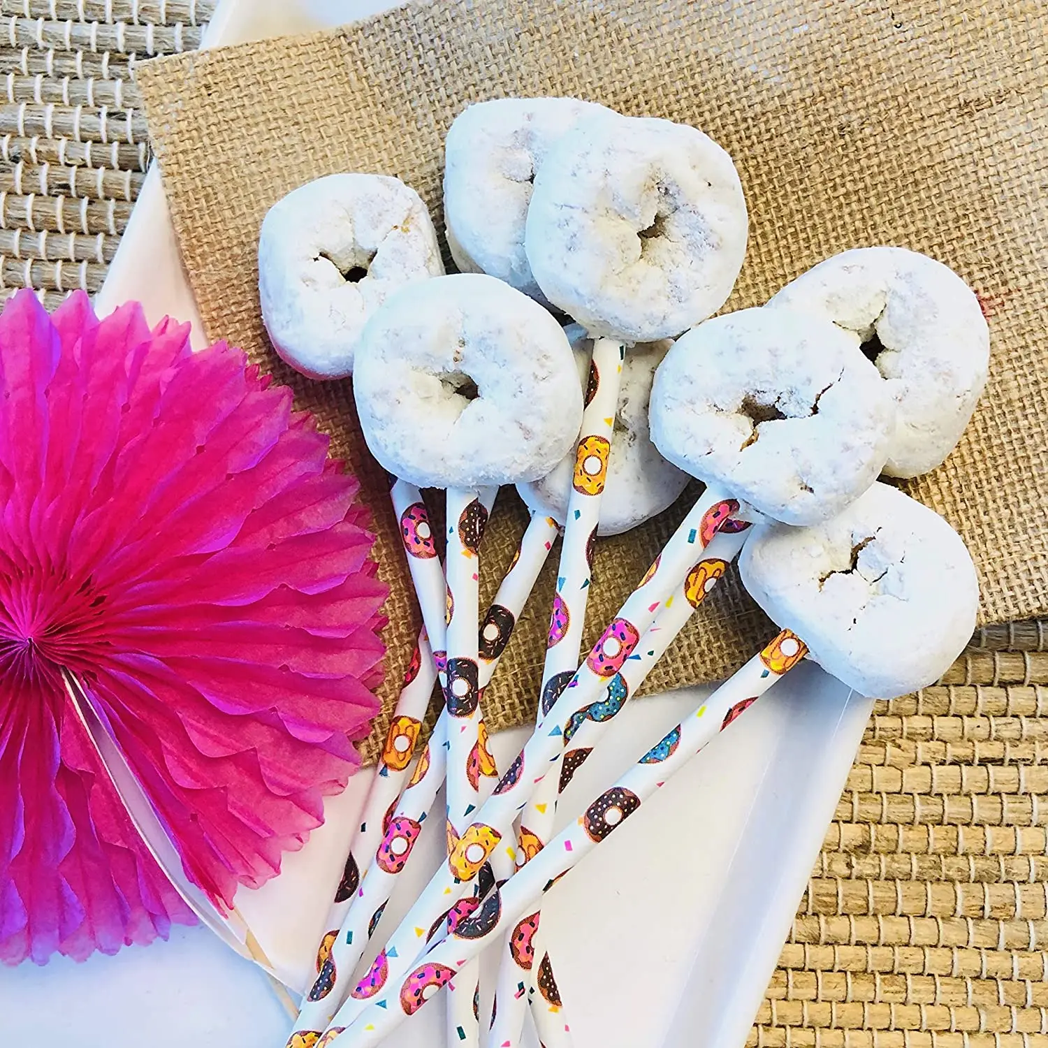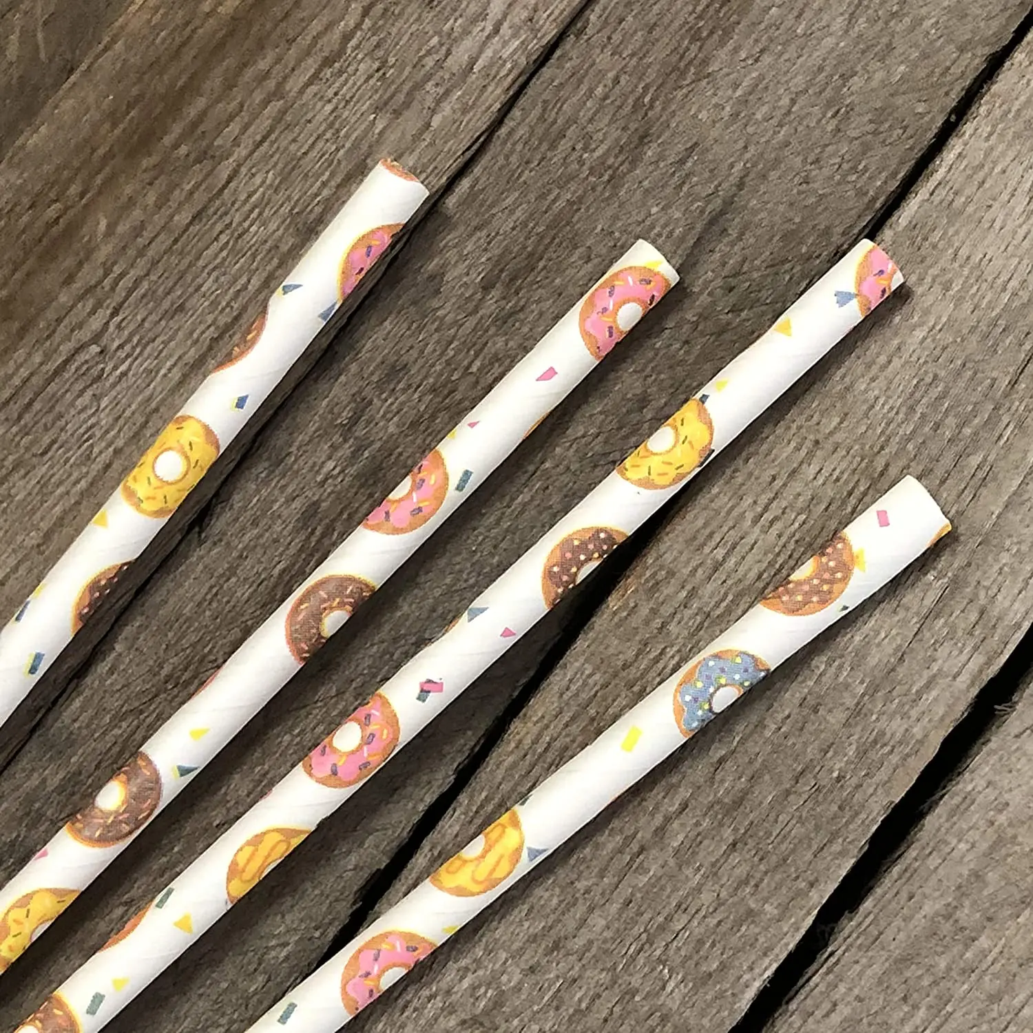 Doughnut Themed Paper Straws Donut Colors Pink Blue Yellow 25-100Pcs party wedding gift paper straw