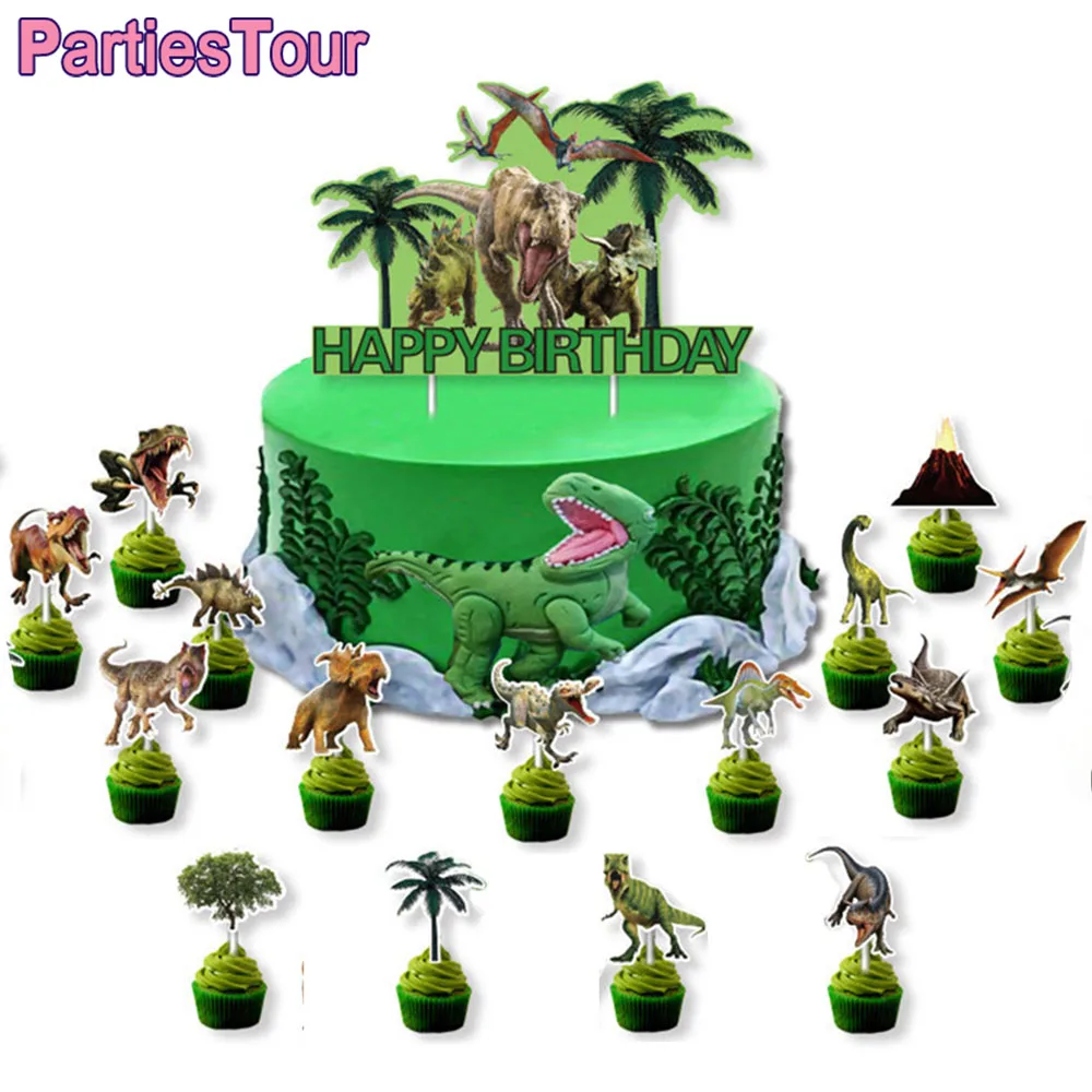 Jurassic dino Birthday Party Decoration 16pcs dinosaur Cake Topper cake decor dino Cupcake Toppers for Kids Birthday party decor