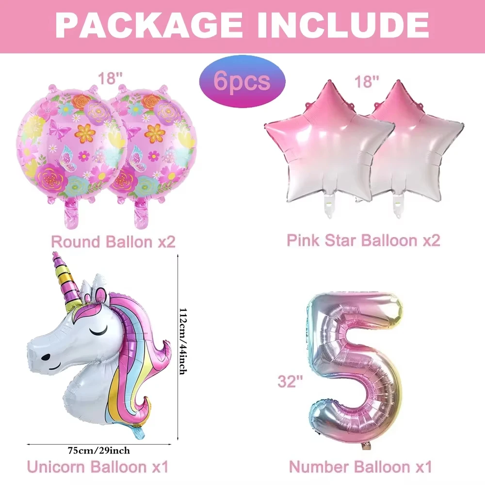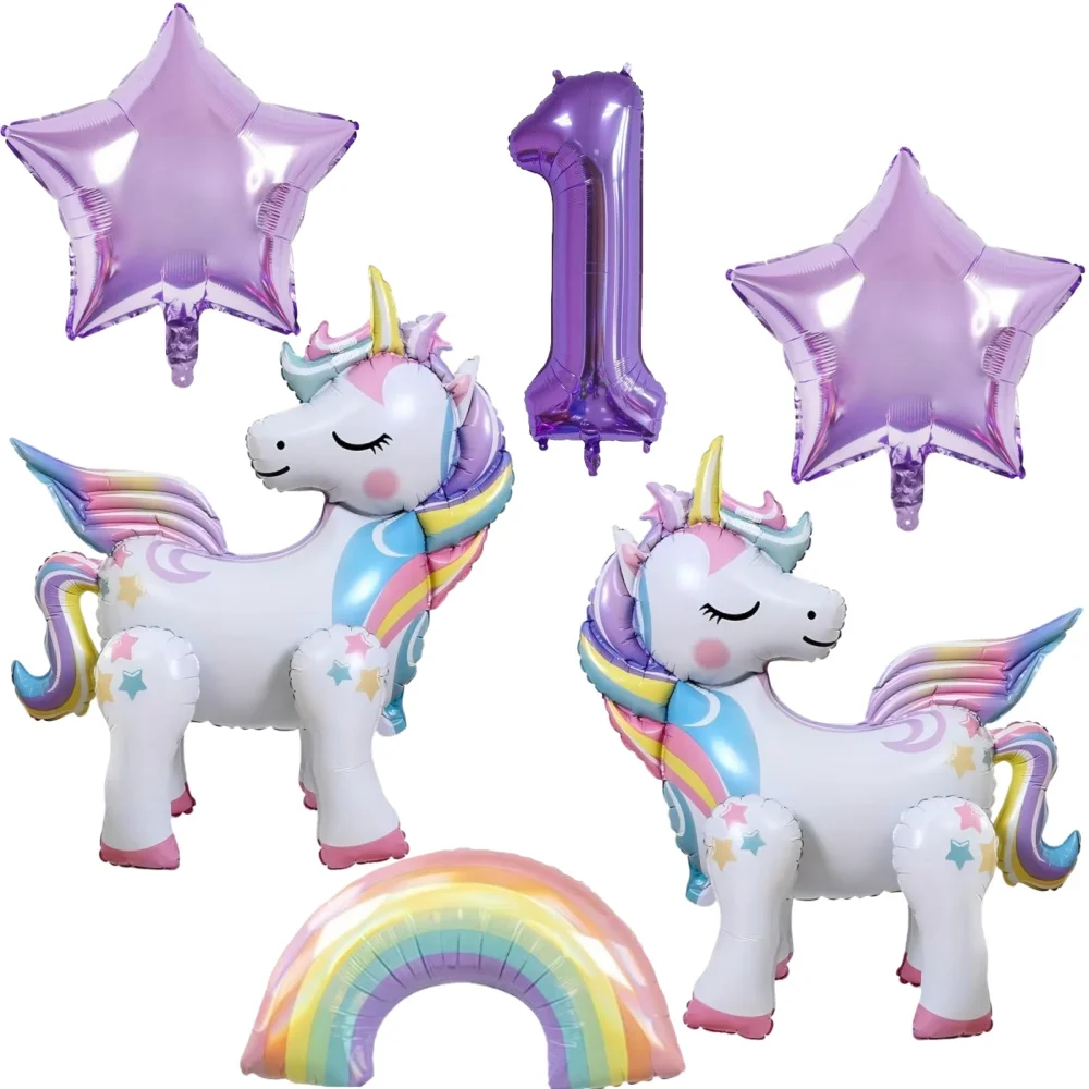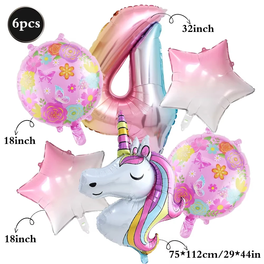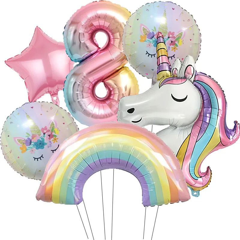 New Rainbow Unicorn Aluminum Balloon Birthday Party Decoration Gradient Number Balloon Unicorn Party Supplies Baby Shower Globos