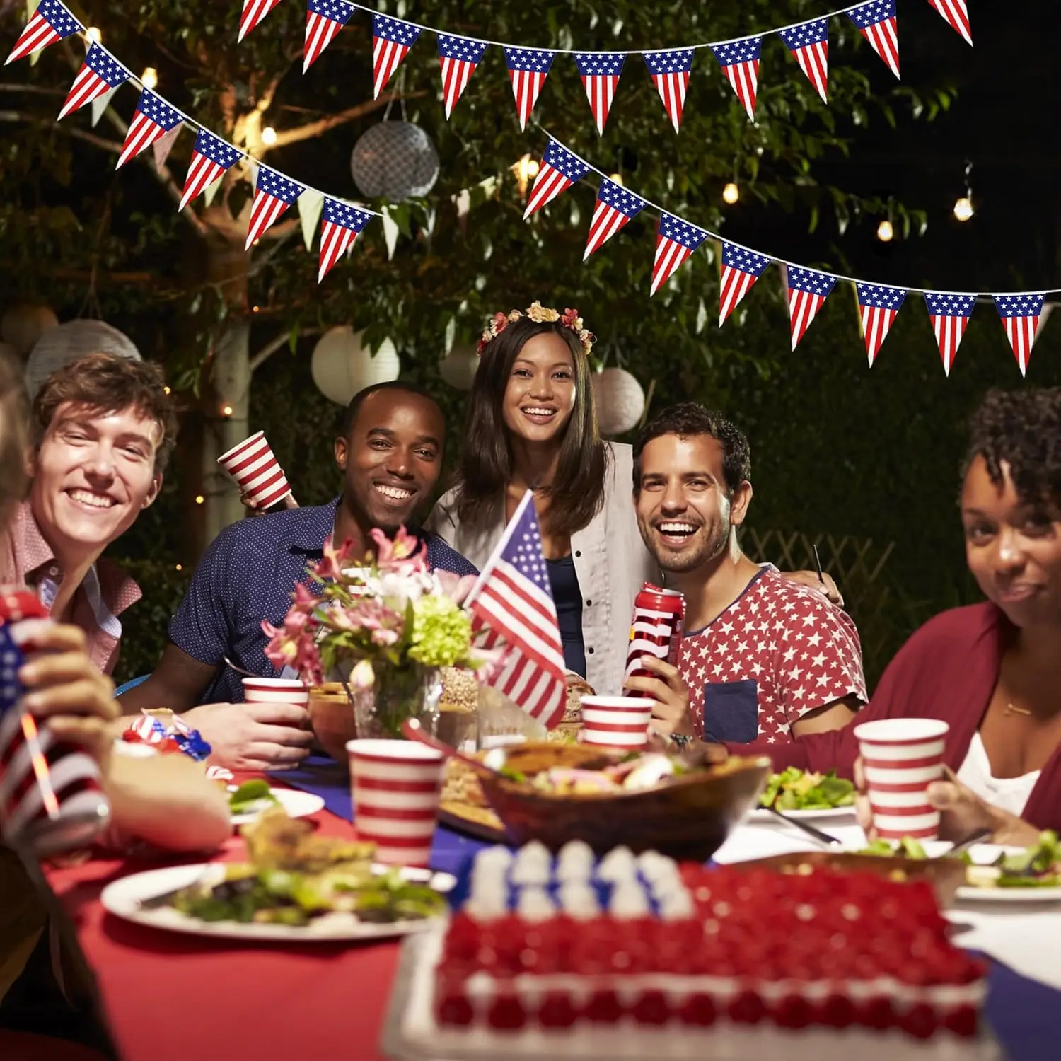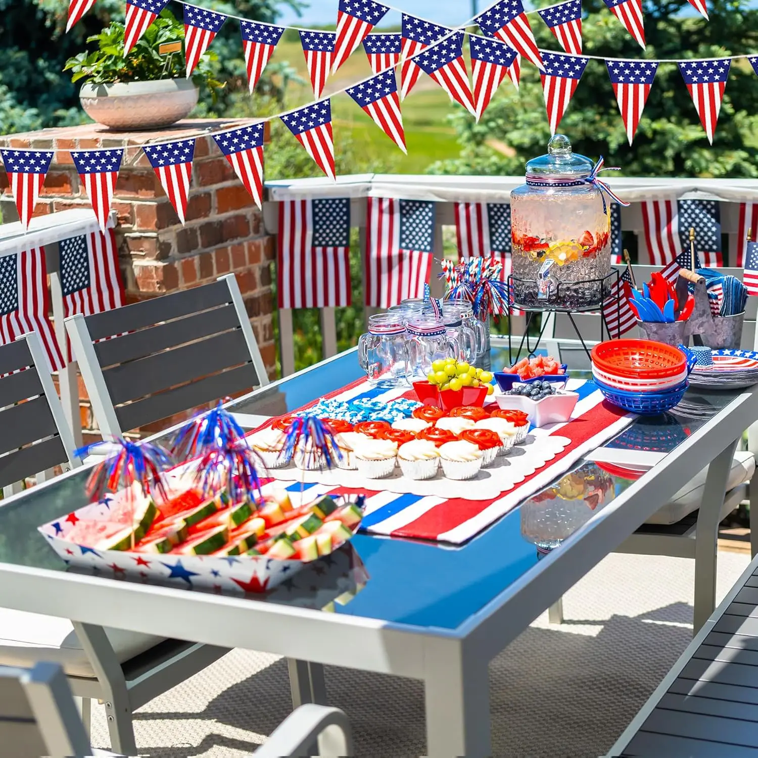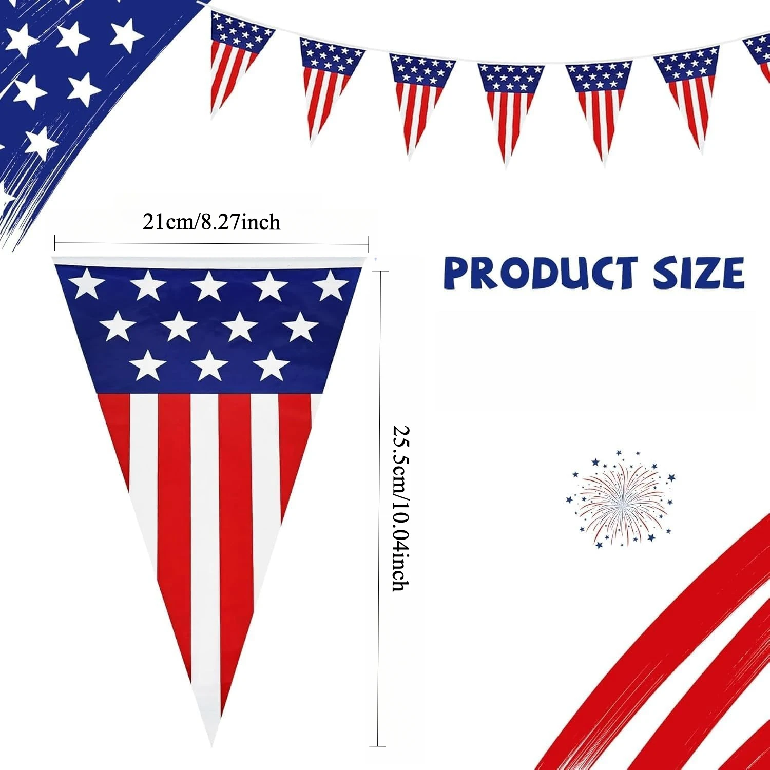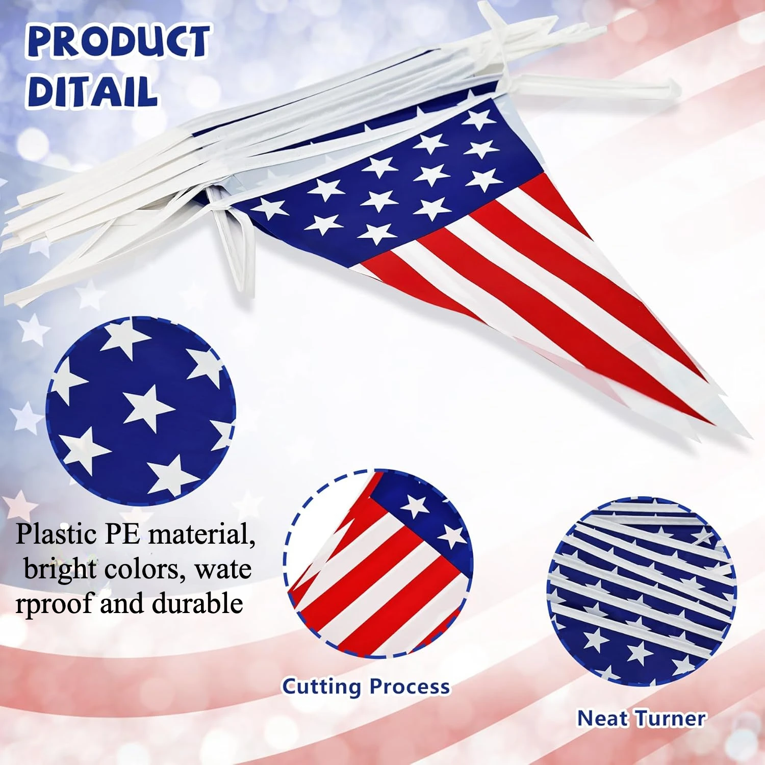 Red White and Blue USA Pennant Banner 32ft Stars&Stripes Bunting, 4th of July Patriotic Party Deco, Waterproof plastic Garland