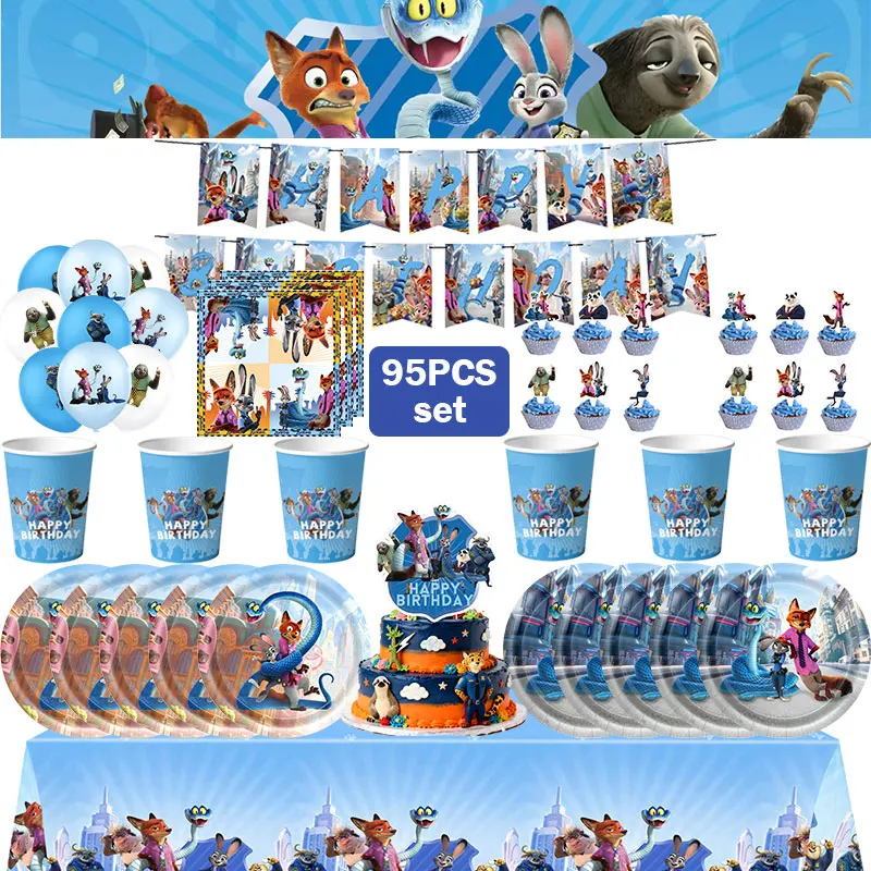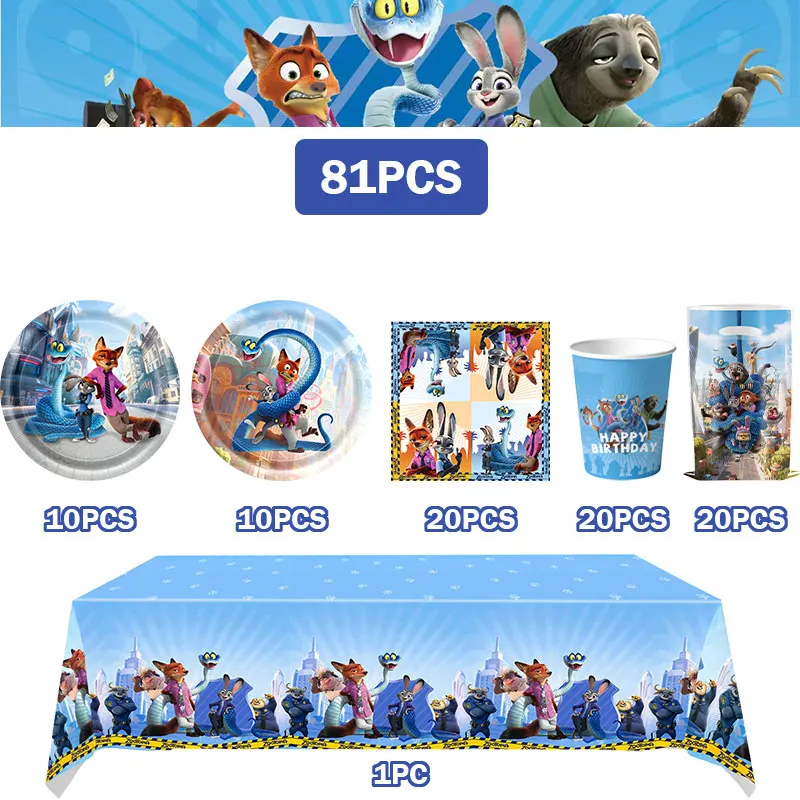 Zootopia Zootropolis Birthday Decoration Set Judy Nick Tableware Plate Cup Banner Supplies Gift for Girls Children Party Favors