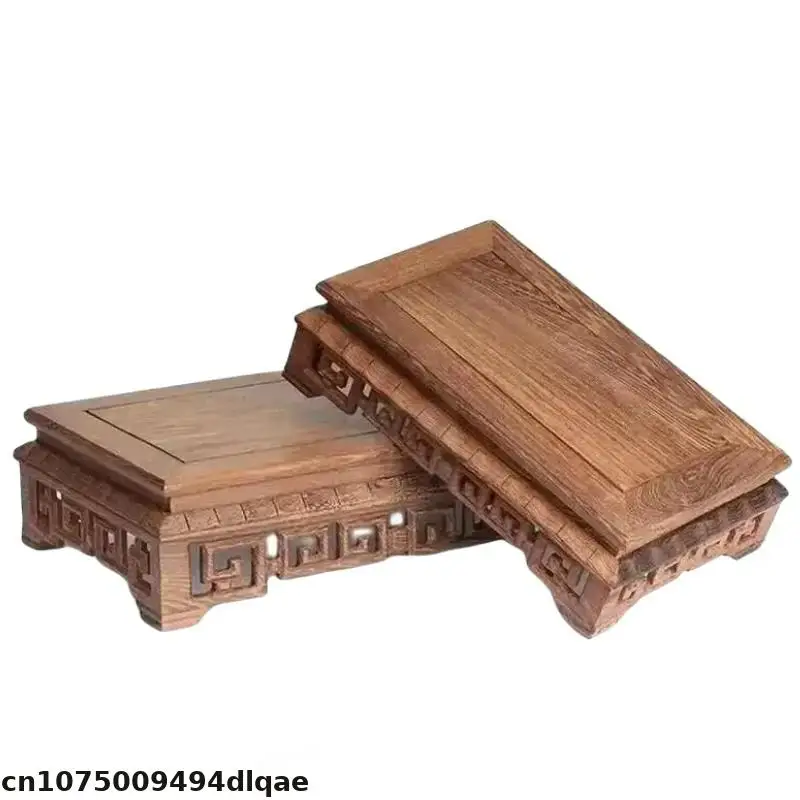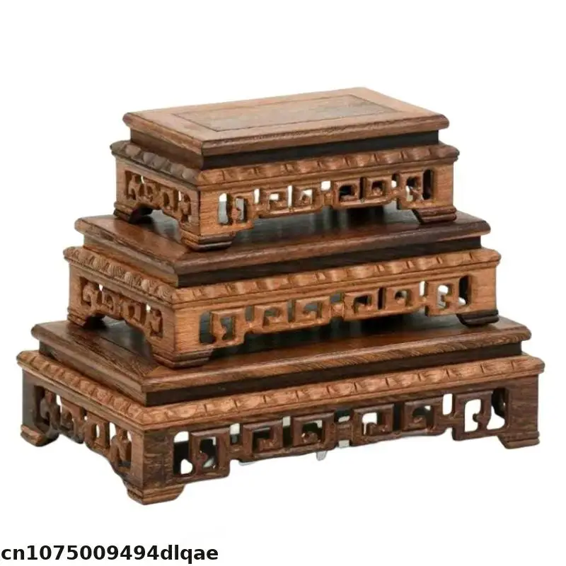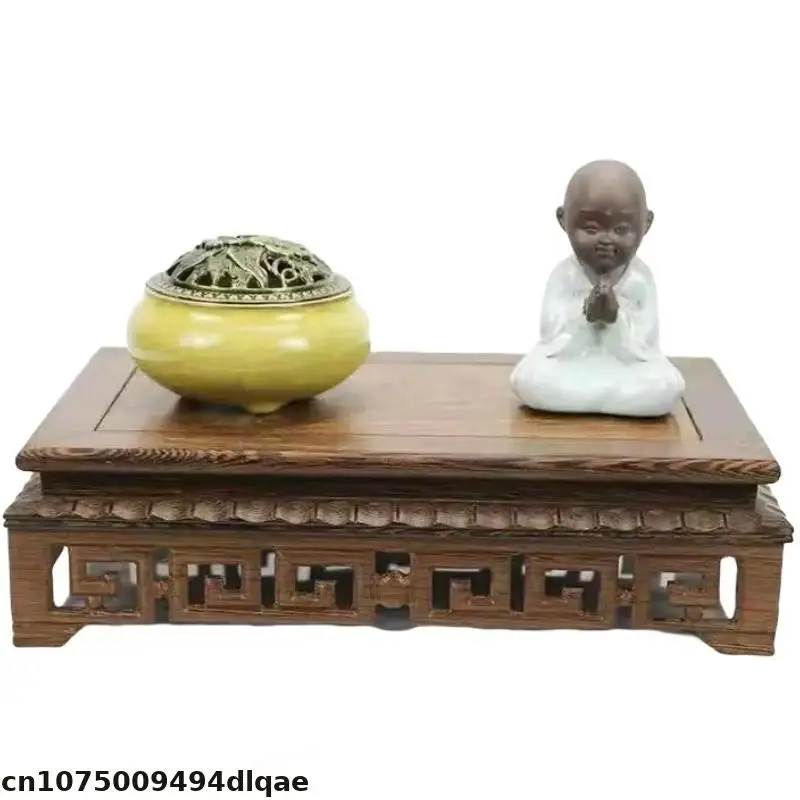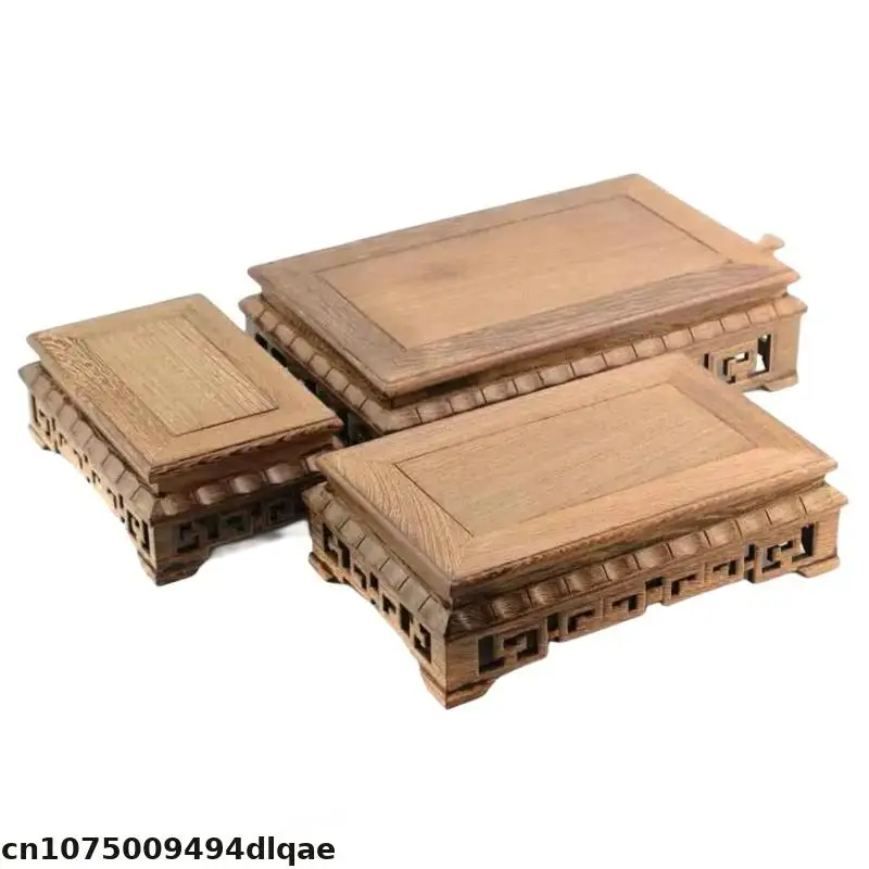 Retro Wooden Carving Decorative Base Mini Model Plant Decoration Rack Tea Set Ceramic Crafts Display Base