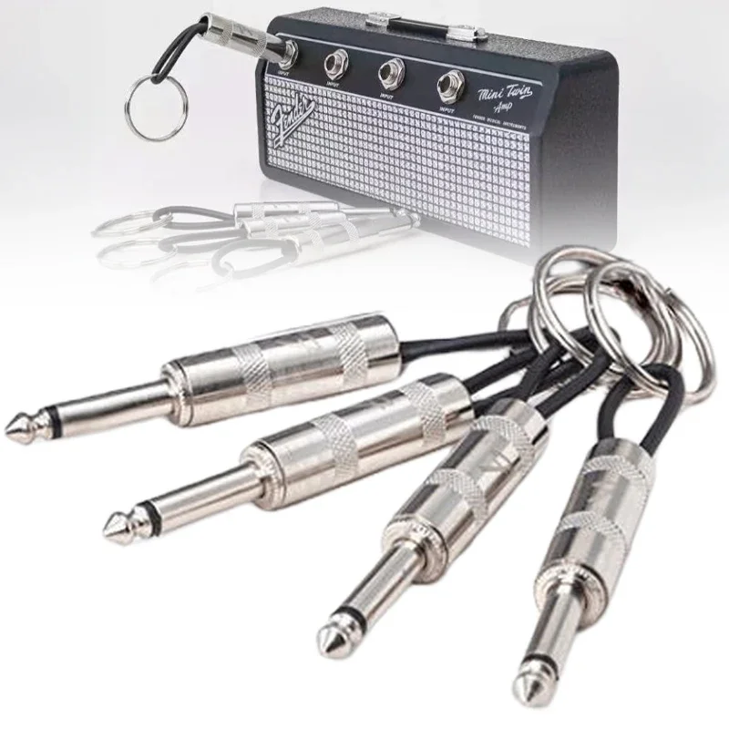 4pcs Wall Guitar Plug Keychain Vintage Amplifier Keychain Holder Key Rings Hanger Functional Key Shelf Hook Home Accessories