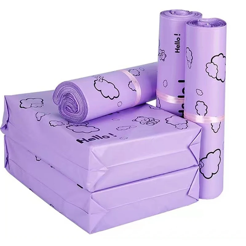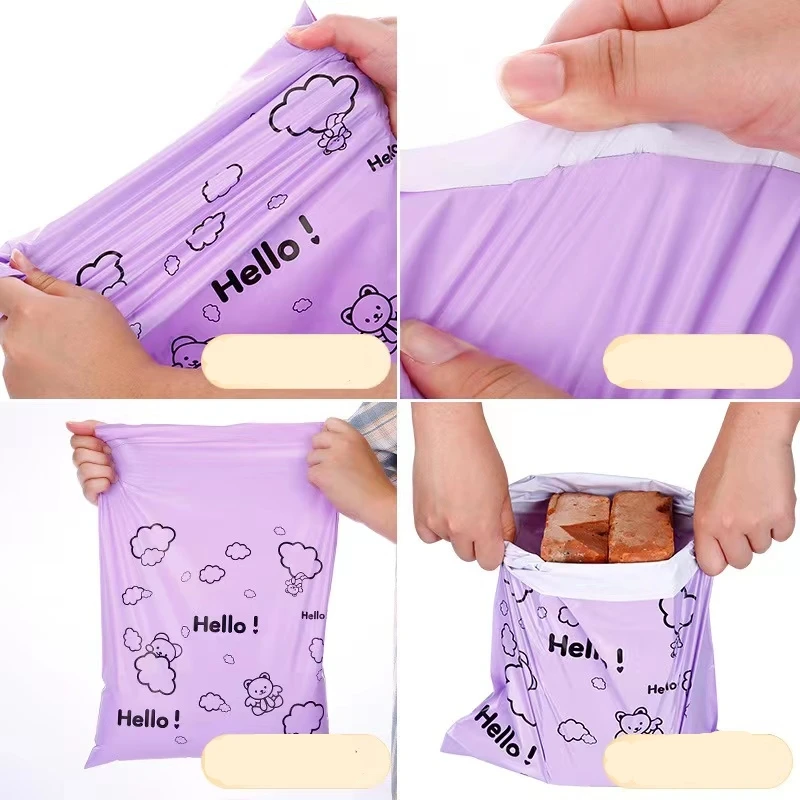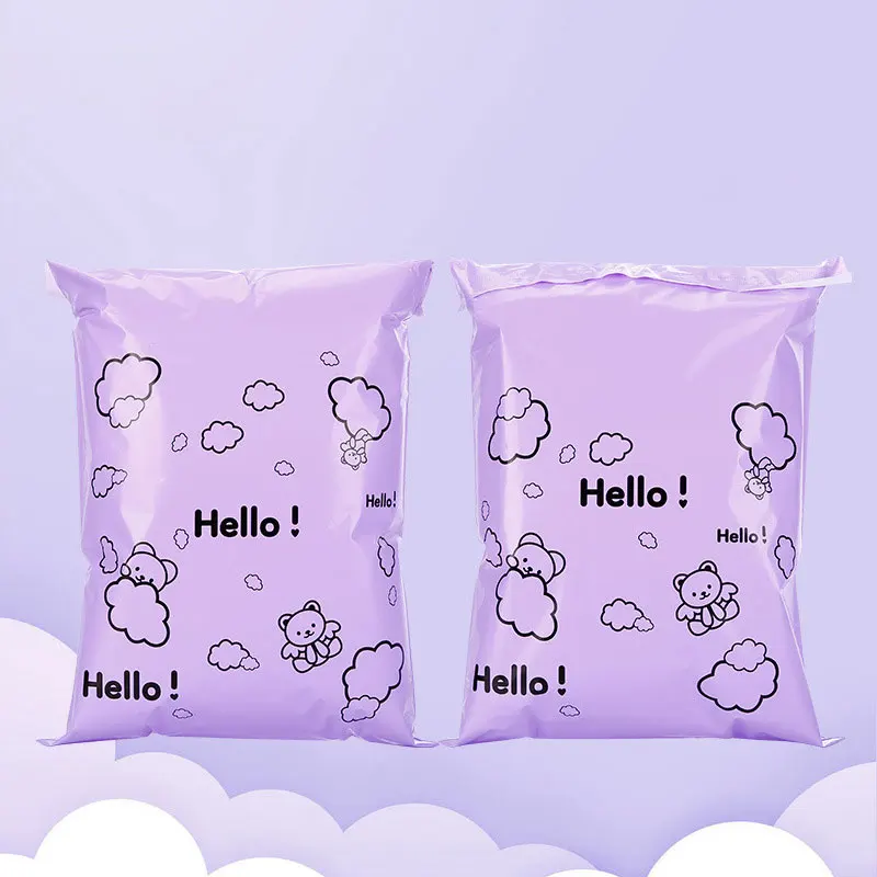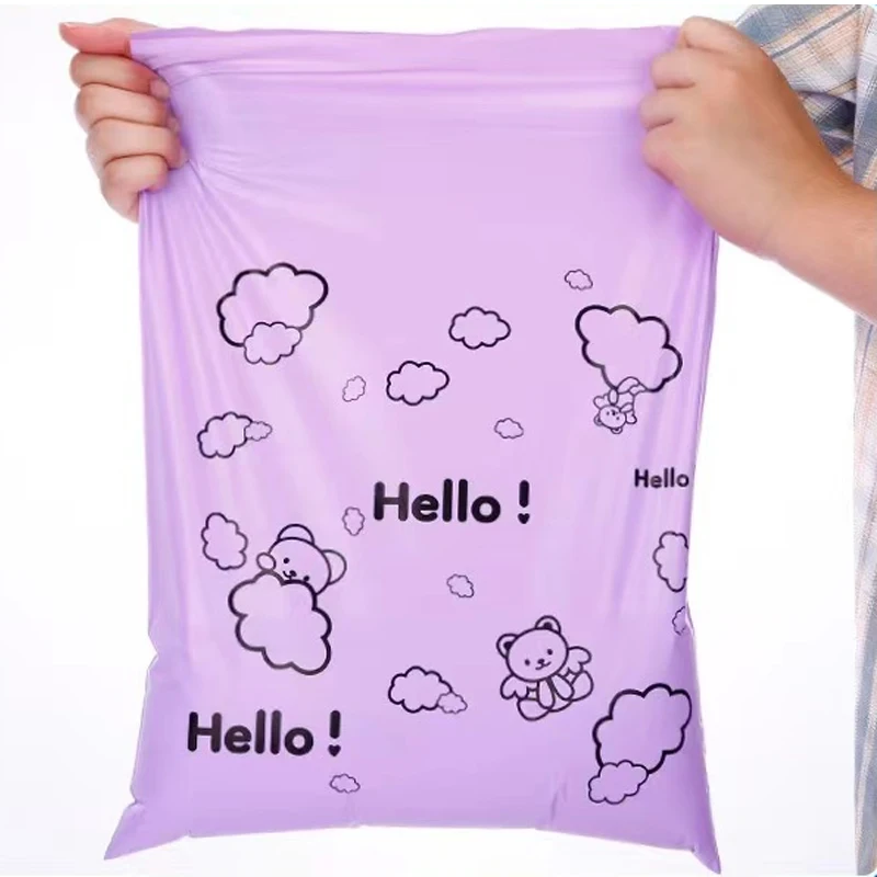 50Pcs Purple Envelope Clothing Gift Mailing Foldable Shopping Bag PE Cartoon HELLO Bear Transport Logistics Courier Post Pouch