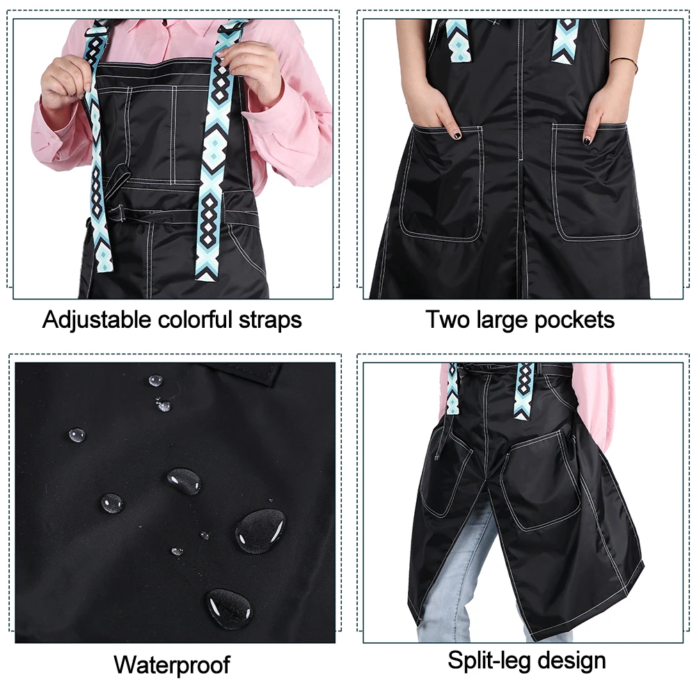2023 New Fashion Nylon Waterproof Apron Coffee Shop Hairdresser Florist Work Clothes Long Slit Adjustable Nail Salon Apron