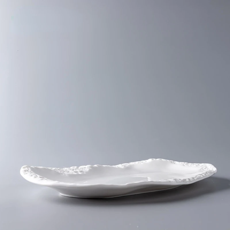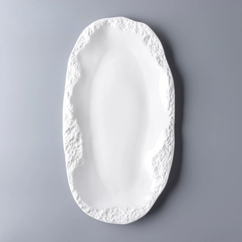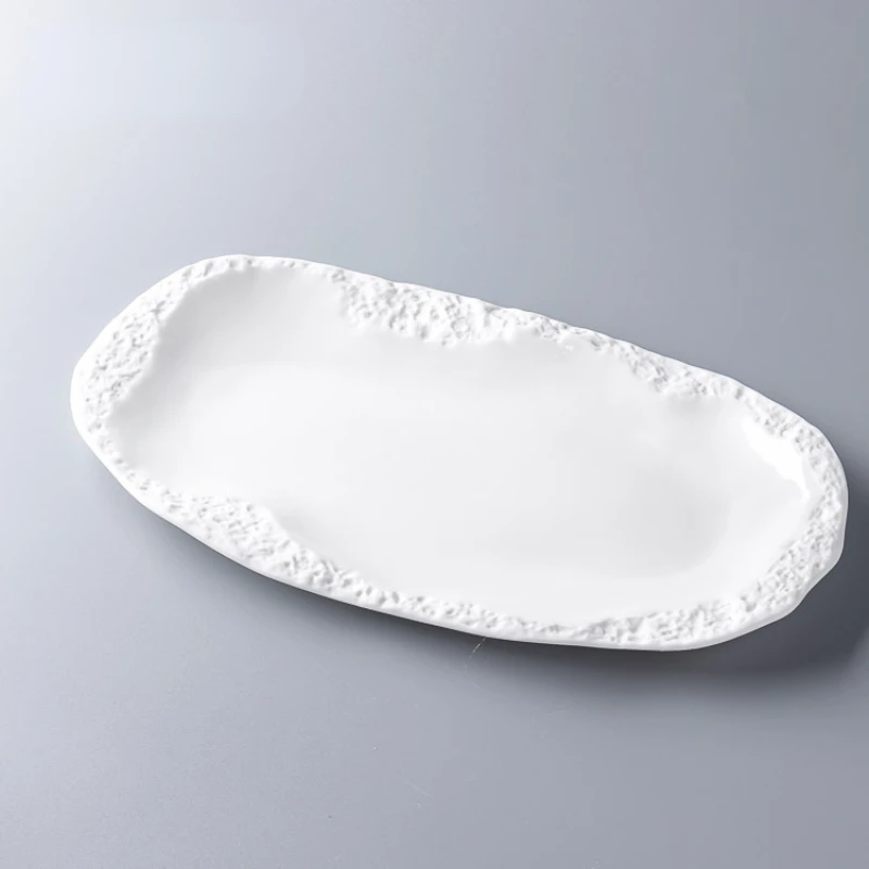 12 Inch Restaurant Matte Ceramic Stone Pattern Dinner Plate Fish Plate Western Food Barbecue Plate Fish Plate Ceramic Tableware