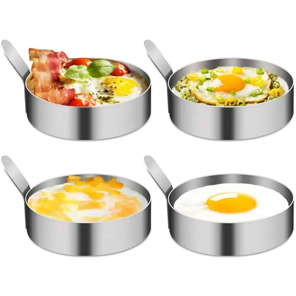 Thickened 304 Stainless Steel Round Fried Eggs Mold with Handle Pancake Forming Mould Omelet Rings Kitchen Cooking Tools