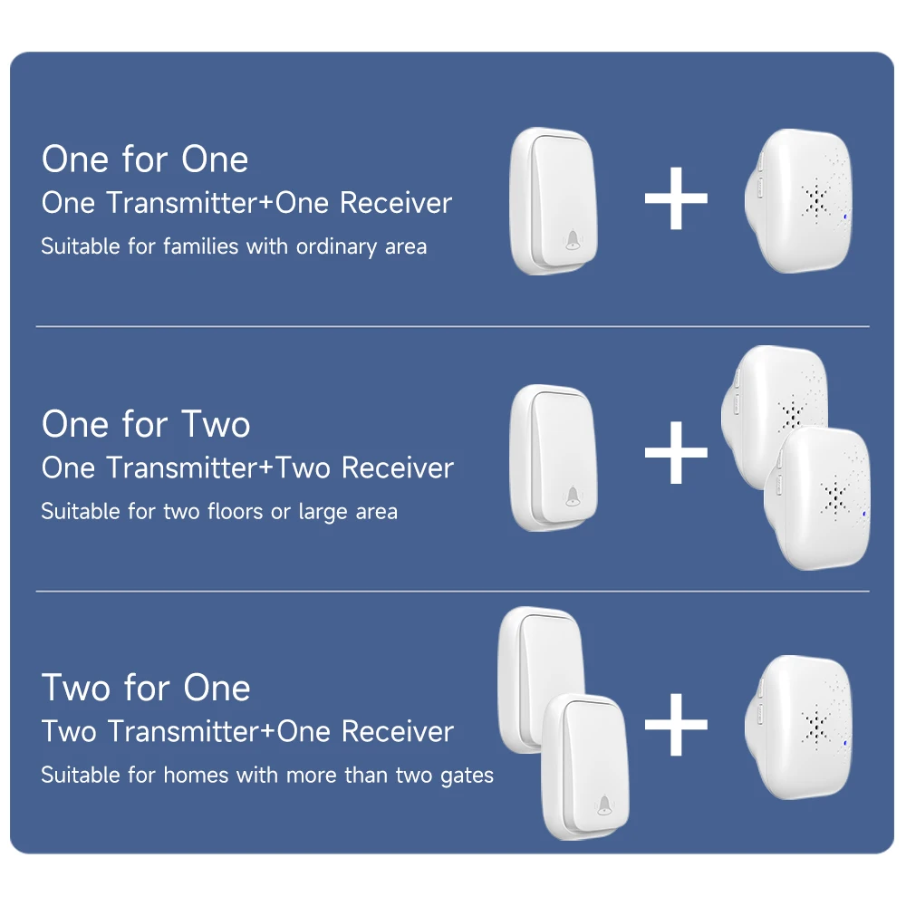 Wireless Doorbell 38-Chime 90db Self-Generating Power Waterproof Remote Modern Design Kinetic Energy Door Bell EU US UK Plug