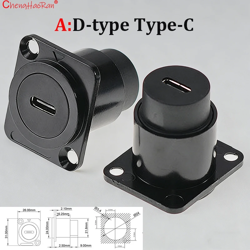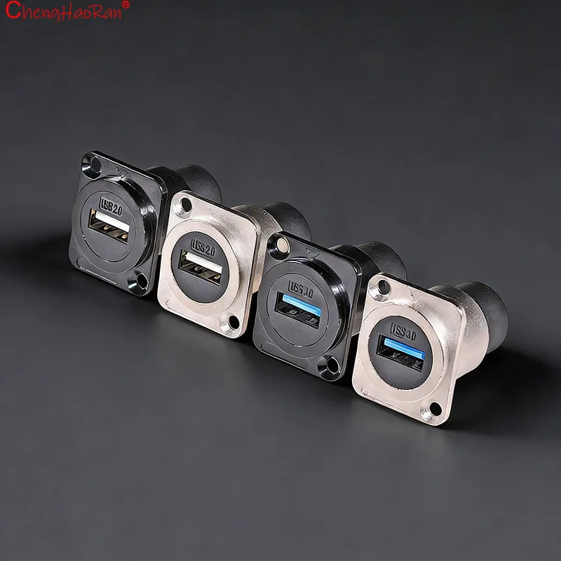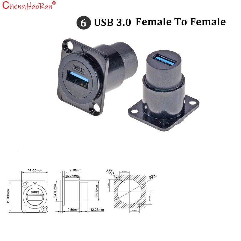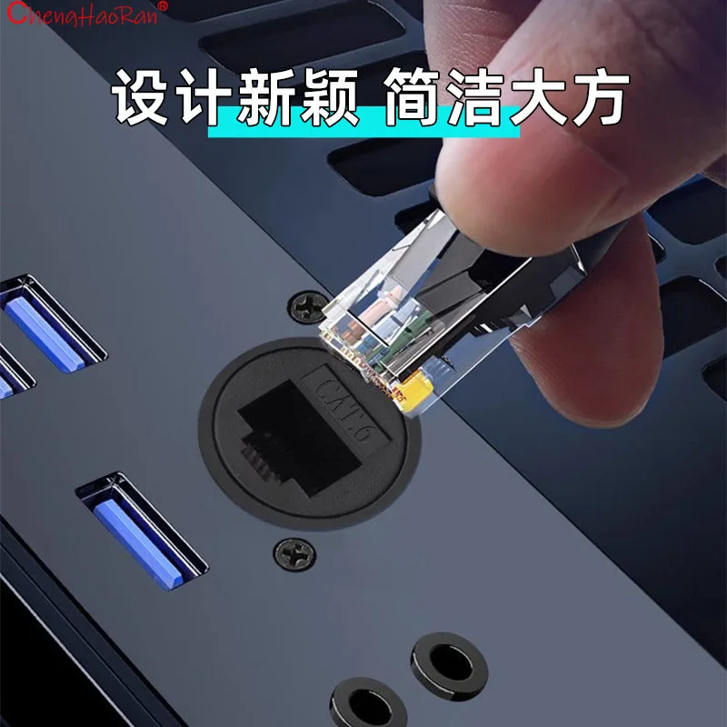 ChengHaoRan 1PC Metal D Type Module RJ45 CAT6 USB 3.0 2.0 Type C Socket Through Network Panel Mounting Electronic Connector
