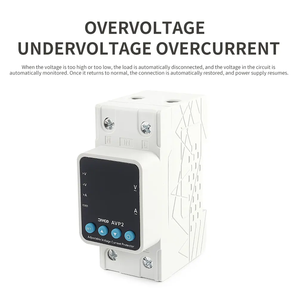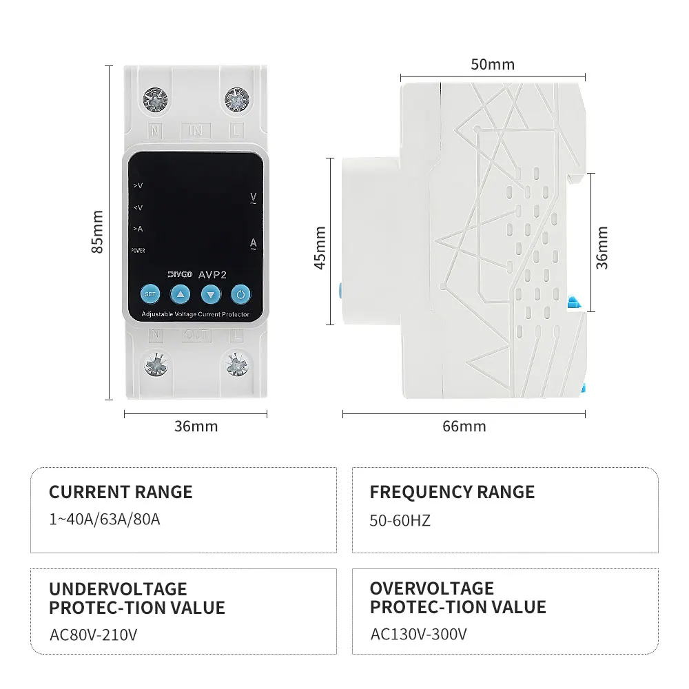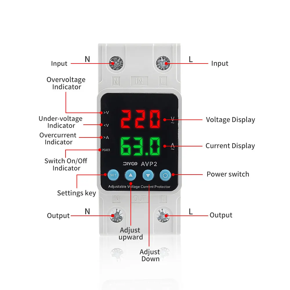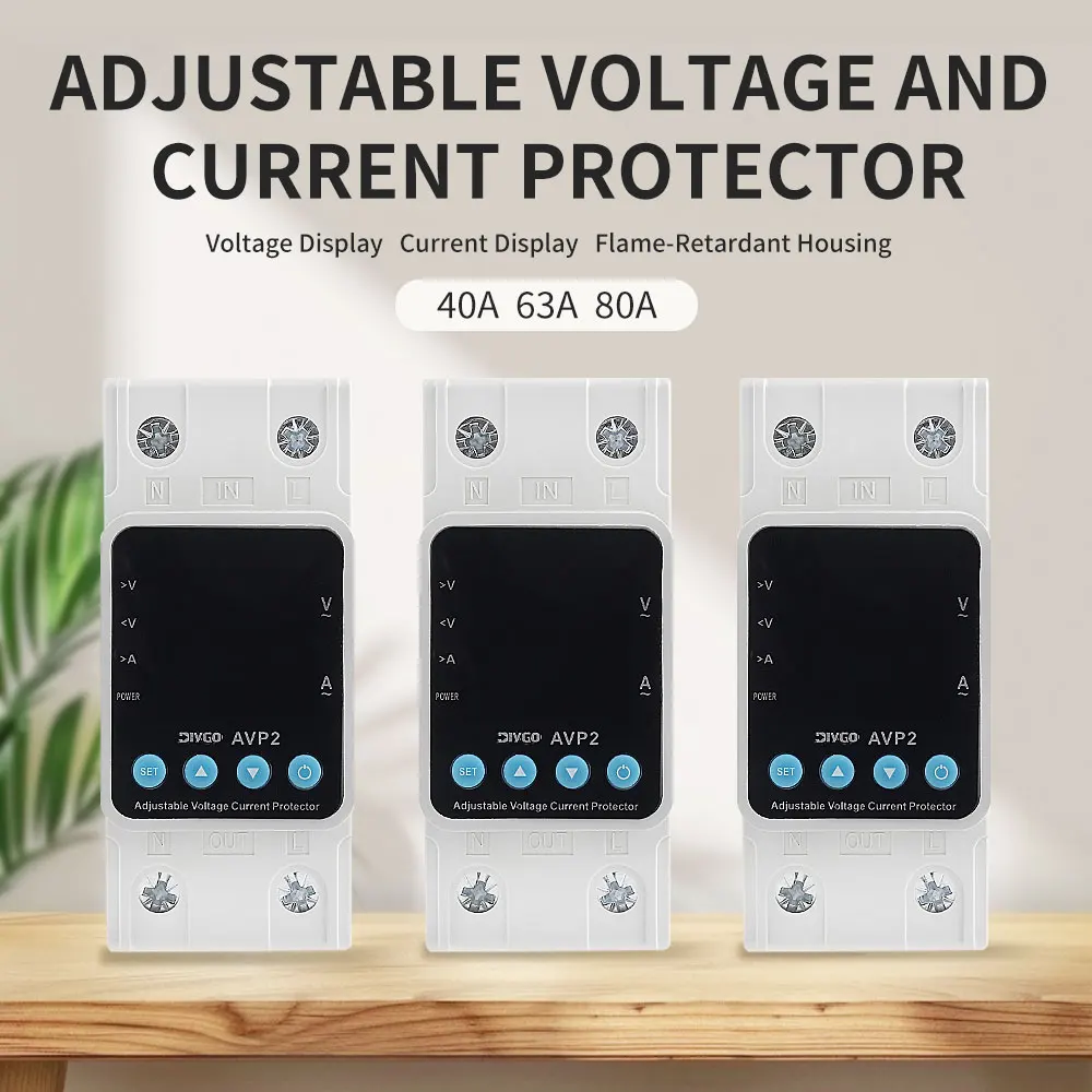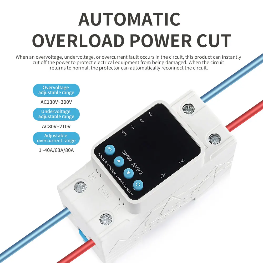 DIY GO Din Rail Adjustable Over Voltage Under Voltage Protection Device 40A 63A 80A 220VAC Digital Display Voltage Protector