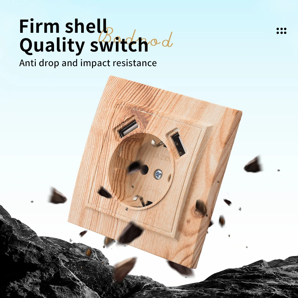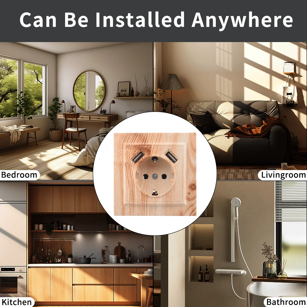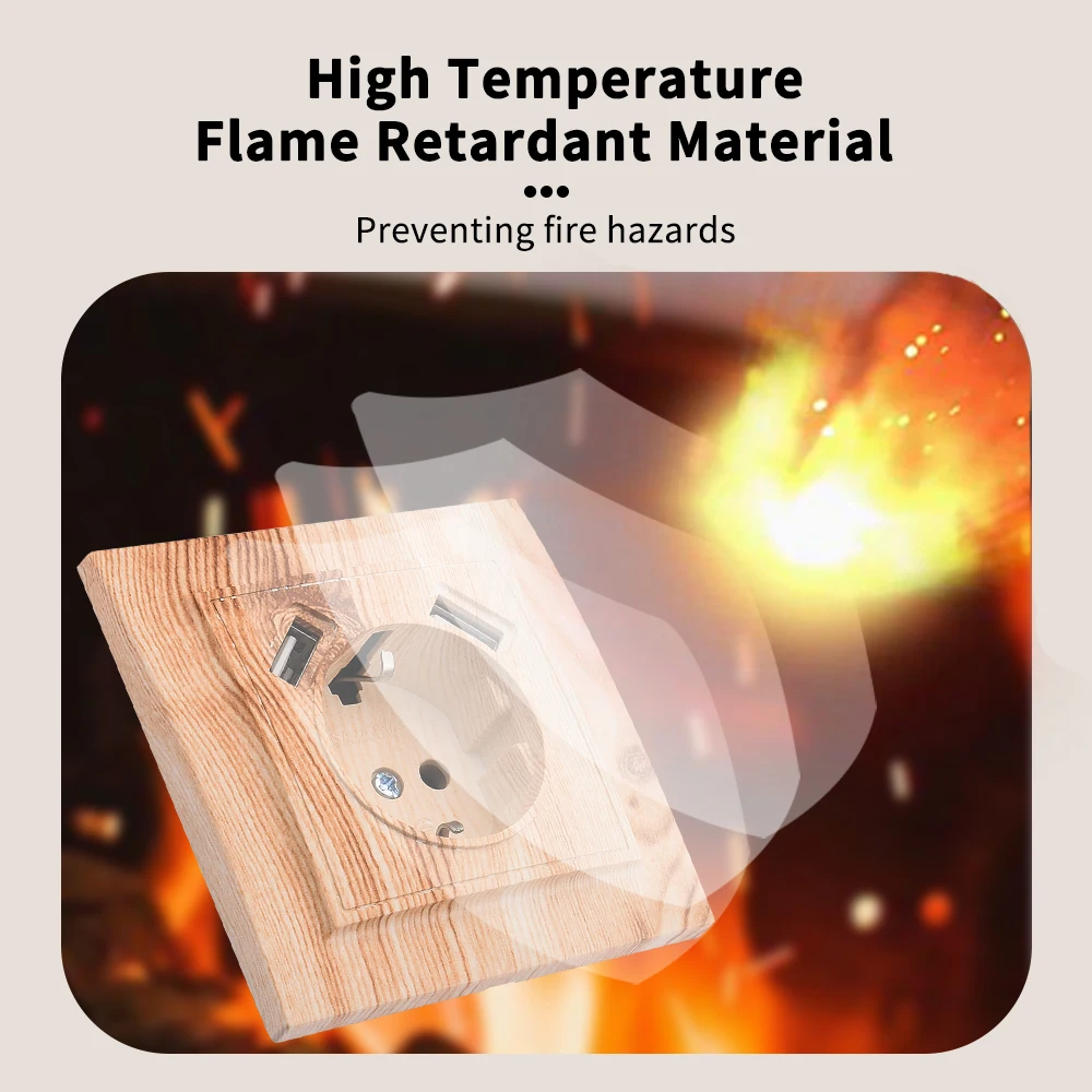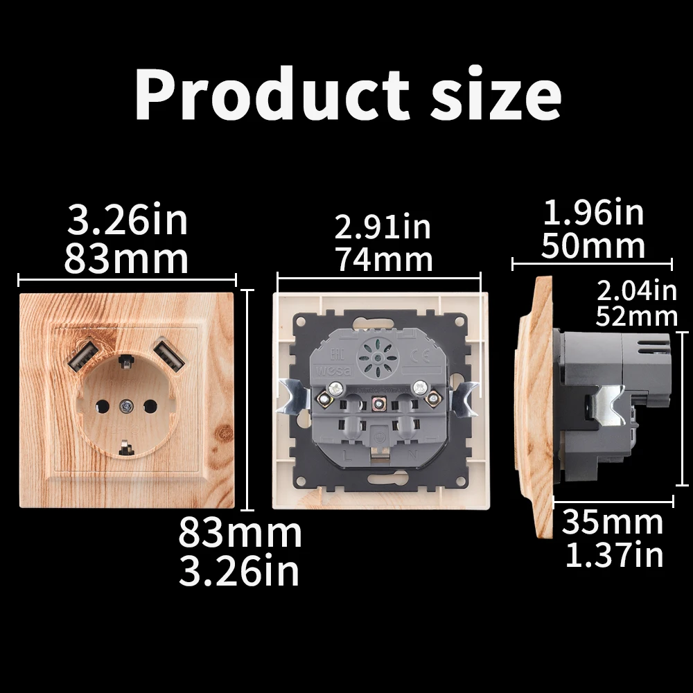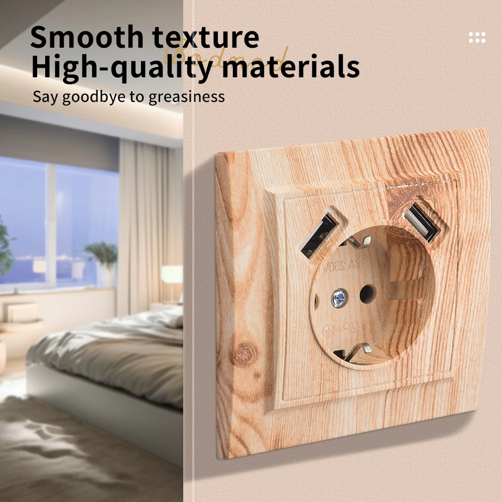 WESA Wood Spray Paint Dual USB Power Socket 2.1A Electrical Outlett EU Standard Ground Plug Wall Socket Flame Retardant Plastic