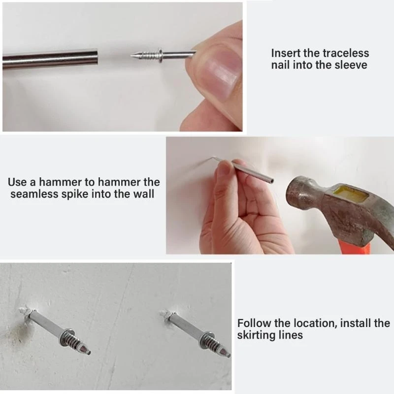 652F Double Sided Traceless Nails With Sleeve Tool Seamless Skirting Board Nails With Double Head set For Baseboard Fixing