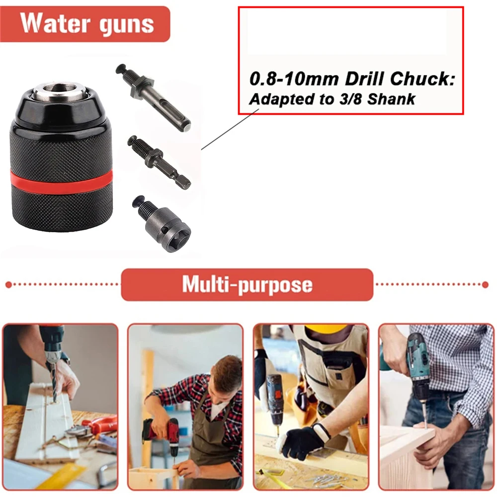 1pc/2pcs/4pcs Set,0.8~10mm Metal Keyless Drill Chuck,3Jaw Ratchet Self-locking Chuck 3/8-24UNF Thread,Chuck for Drill Bit&Sleeve