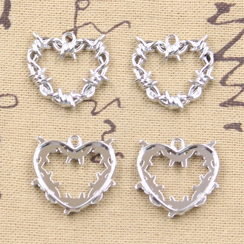 10pcs Charms Bramble Heart Thorn 21x23mm Tibetan Silver Color Pendants Antique Jewelry Making DIY Handmade Craft