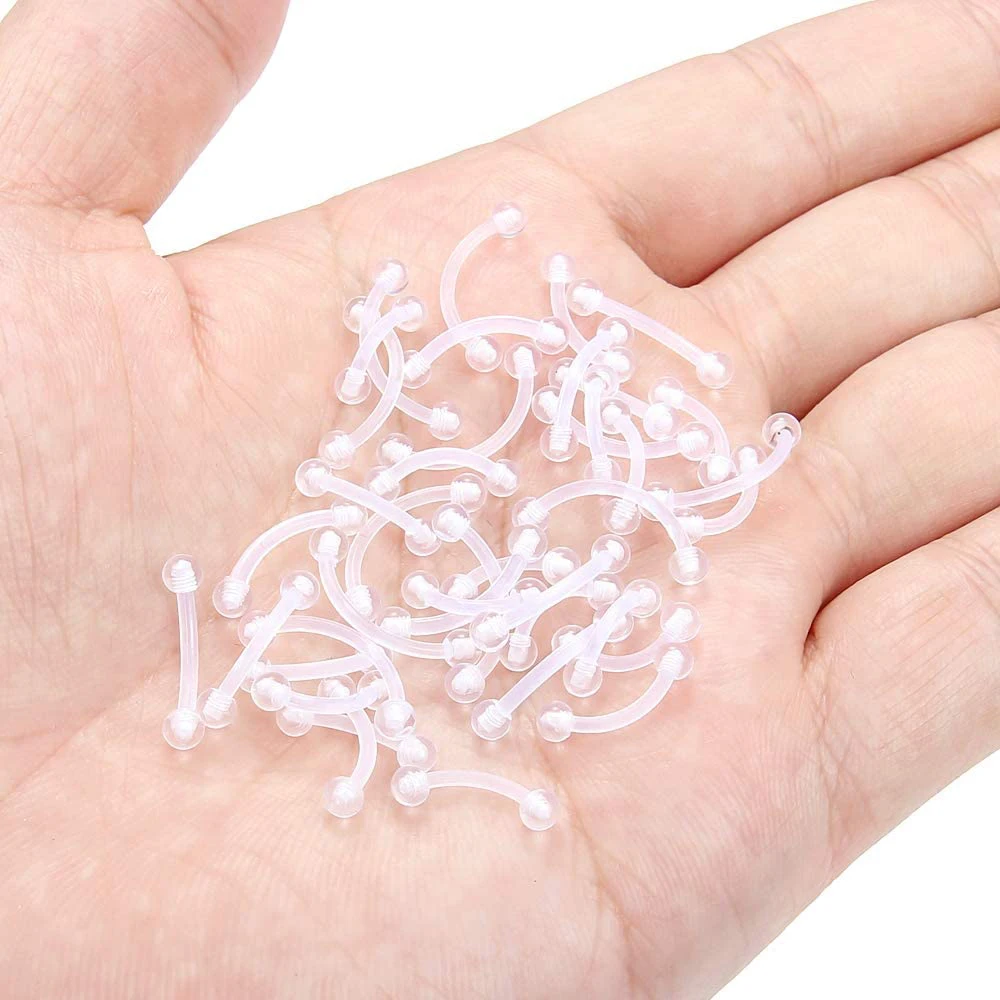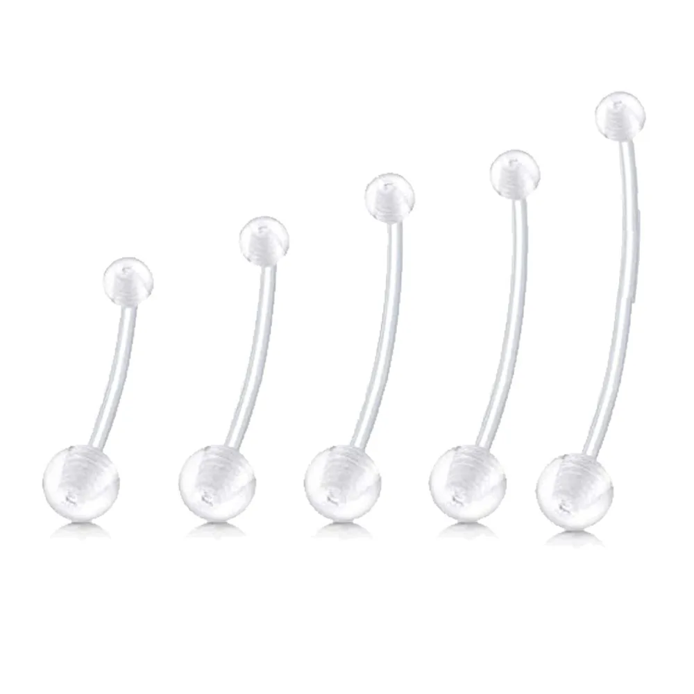 14G 16G Clear Belly Button Rings Bioflex Plastic Belly Ring Curved Barbell Navel Piercings Retainers for Work Surgery