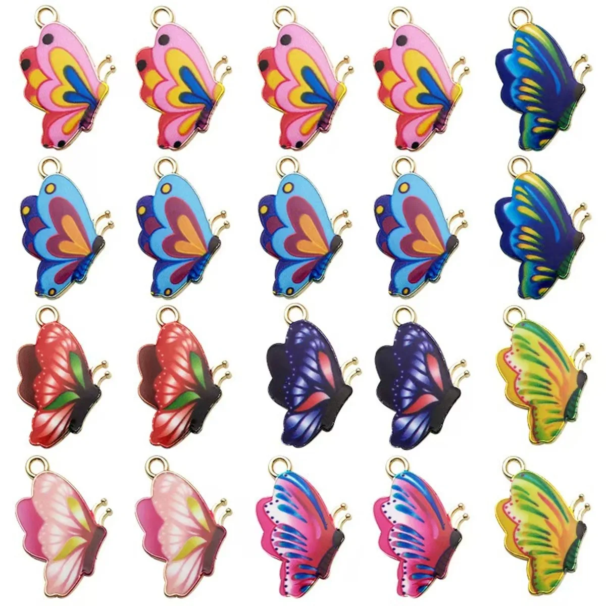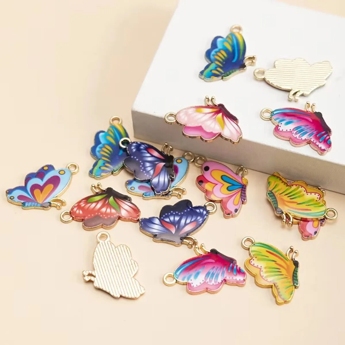16pcs/lot Mixed Enamel Butterfly Charms Insect Alloy Pendant DIY Earrings Necklace For Jewelry Making Accessories