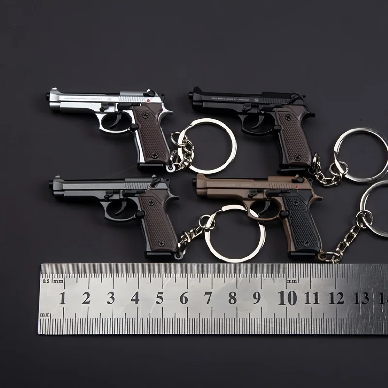 2025 Tactical Pistol Keychain-1:4 Alloy Gun Model with Tassels&Clear Cover, Sporty Keyring Bag Pendant Gift for Men Mini Pendant