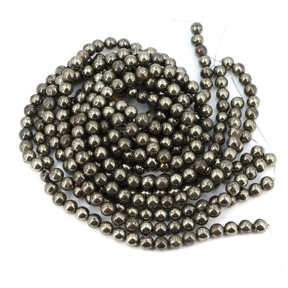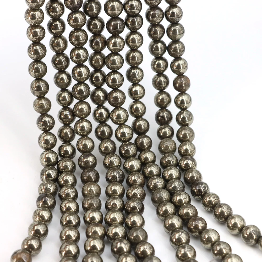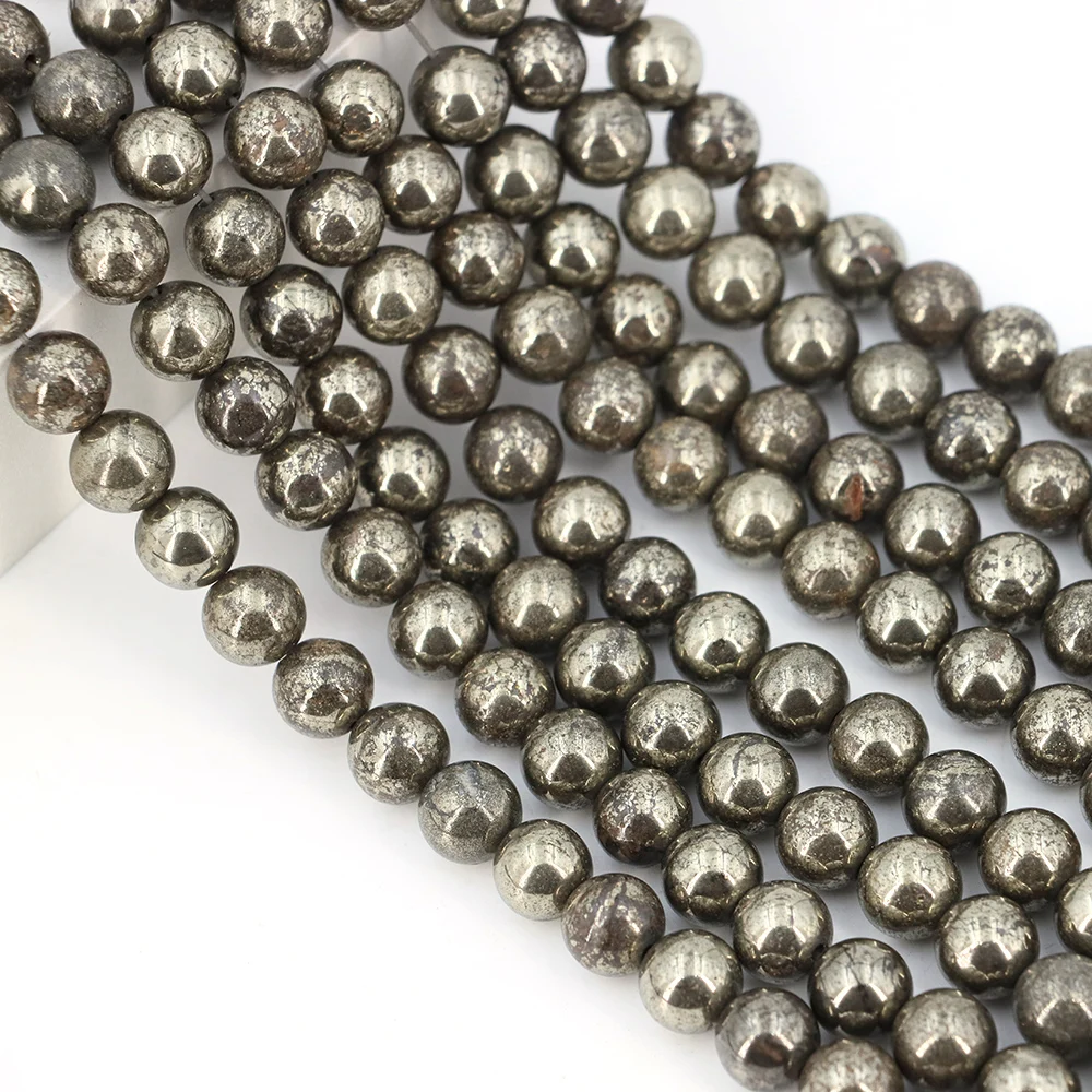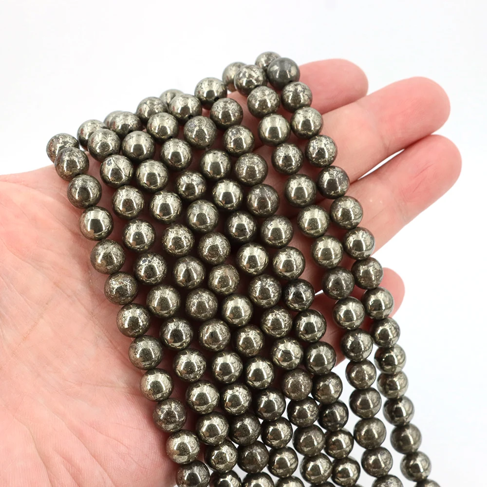 4/6/8/10mm Natural Pyrite Beads Round Loose Spacer Stone Bead for Jewelry Making Supplies DIY Energy Healing Bracelets Accessory