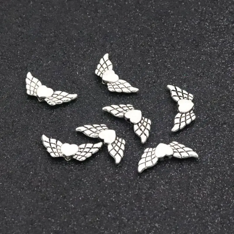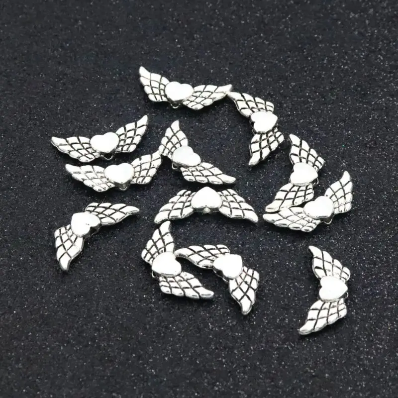 50pcs Wing Tibetan Silver Loose Spacers Metal Beads For Jewelry Finding Size 21MM Hole 1mm Handmade Jewelry DIY Accessories