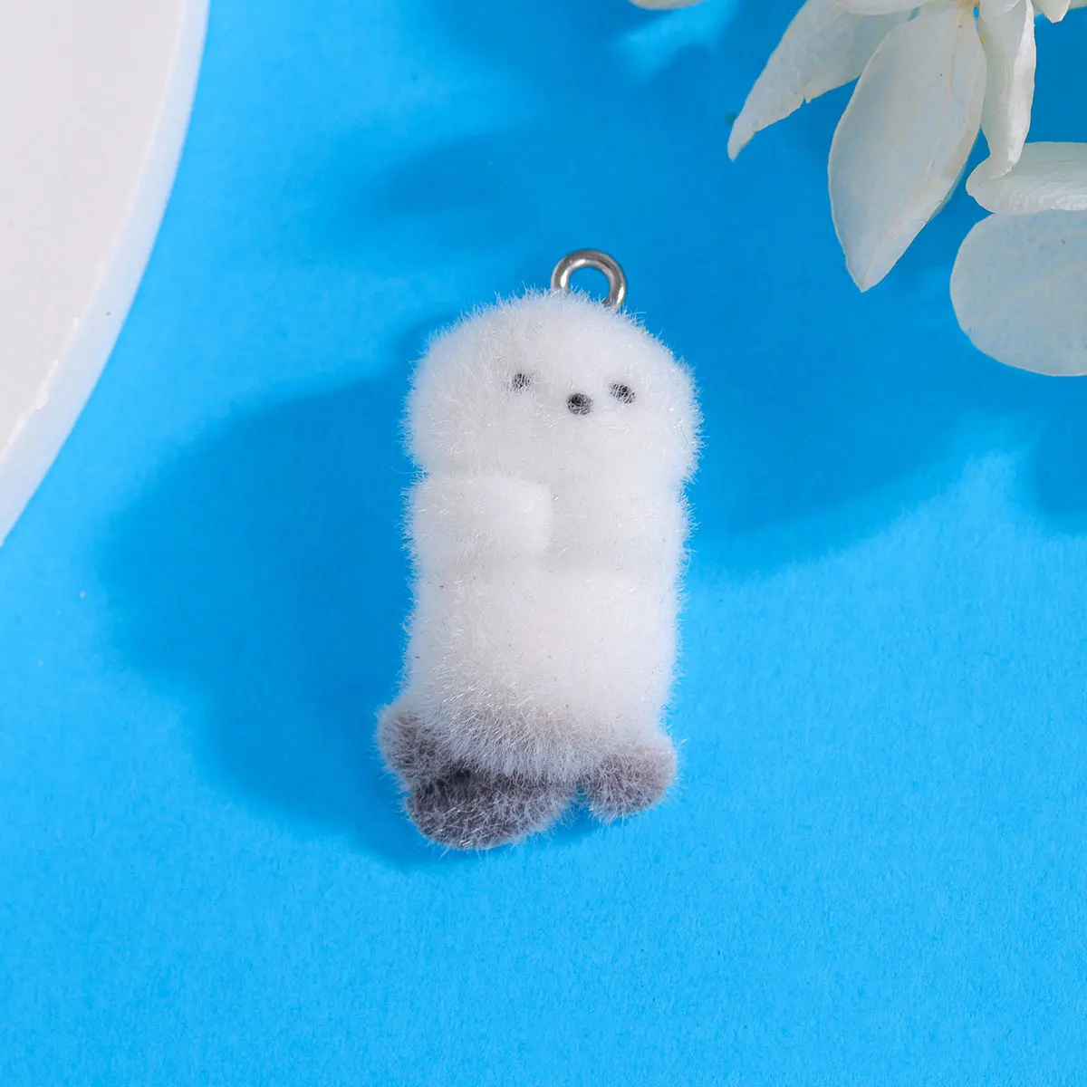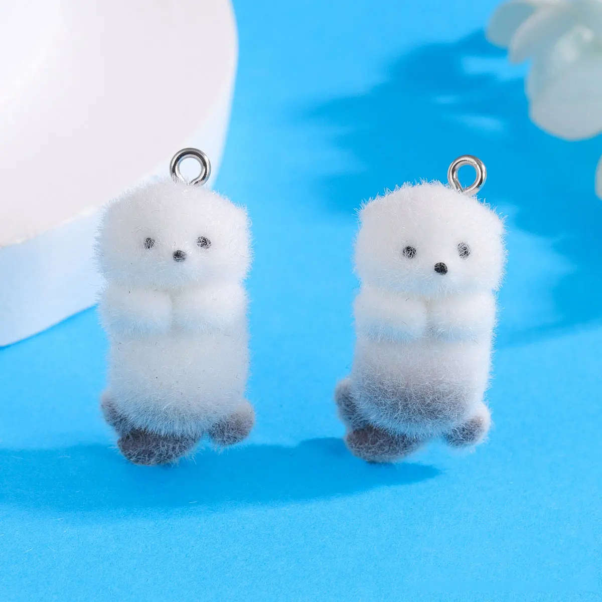 5/10pcs Cute Flocking Sea Otter Resin Charms Animal Pendant DIY Keychain Earring Accessory for Jewelry Making Findings 28*15mm