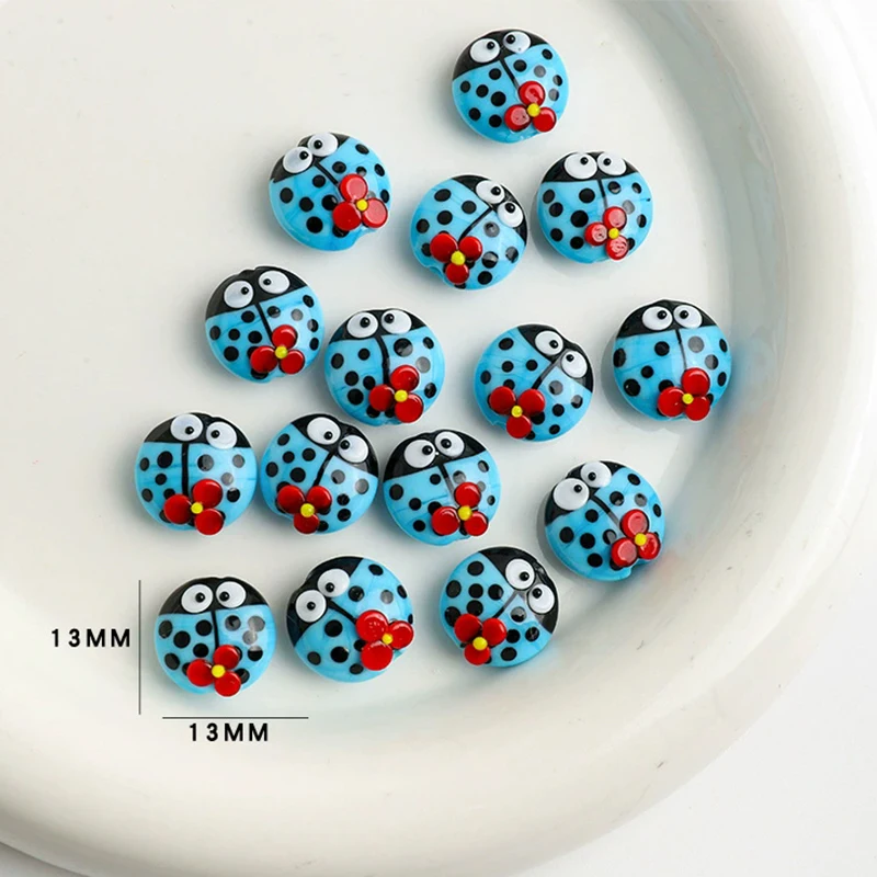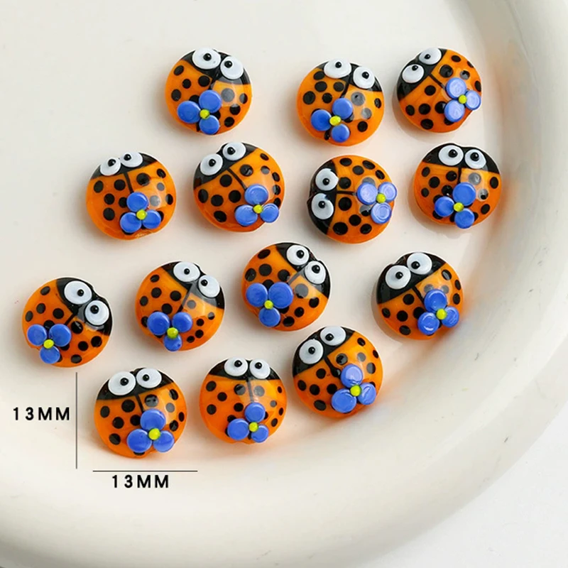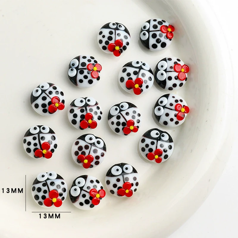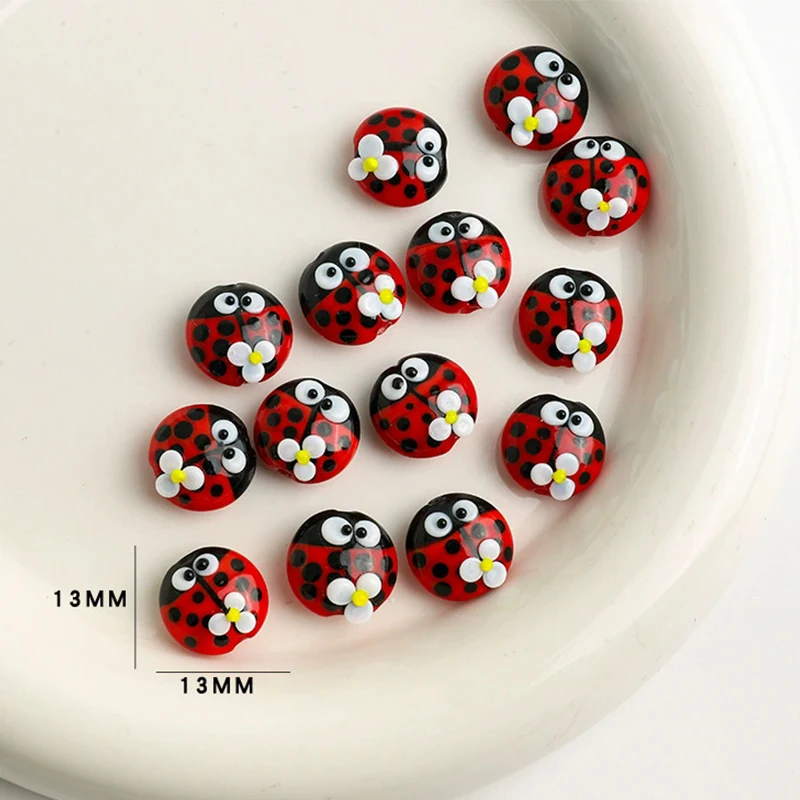 5pcs 13x13mm Cute Ladybug Glass Beads Handmade Lampwork Flower Ladybird Bead For Jewelry Making Charm Pendant Accessories