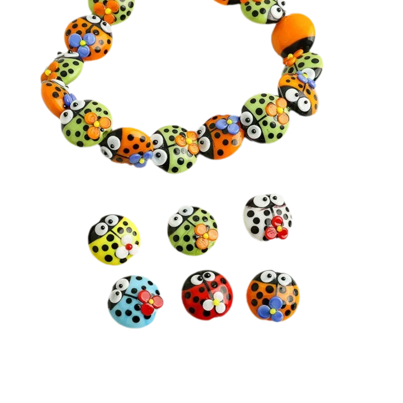 5pcs cute ladybug glass beads, handmade lampwork for jewelry making.