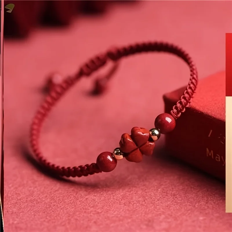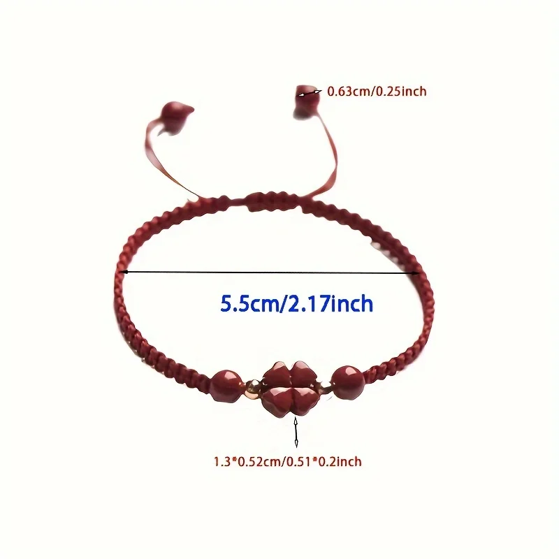 Braided Lucky Red Cord Bracelet - Four-Leaf Clover Peace & Happiness Charm