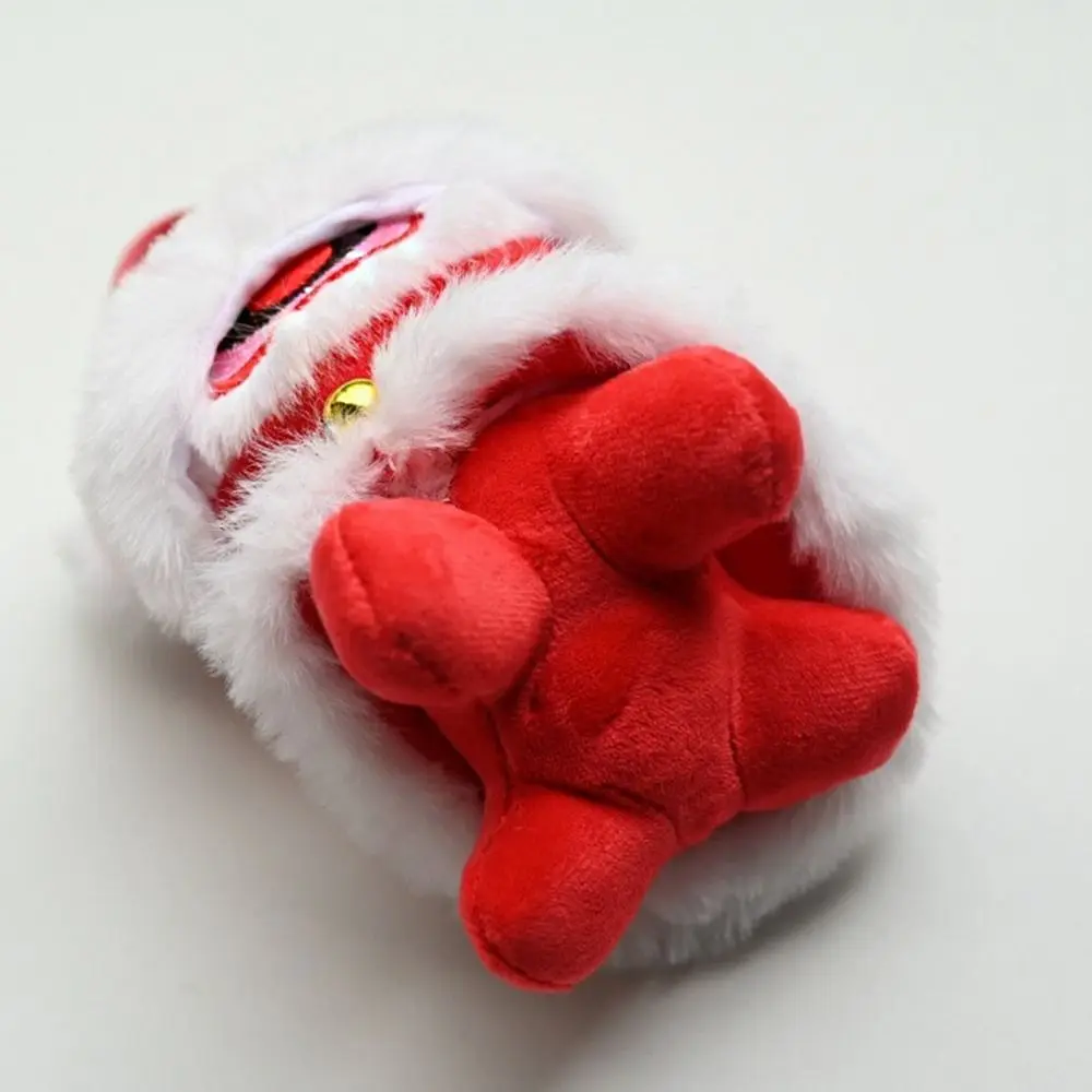 The decorative lion dance figure is made of soft plush fabric, with an alloy carabiner clasp for secure attachment.