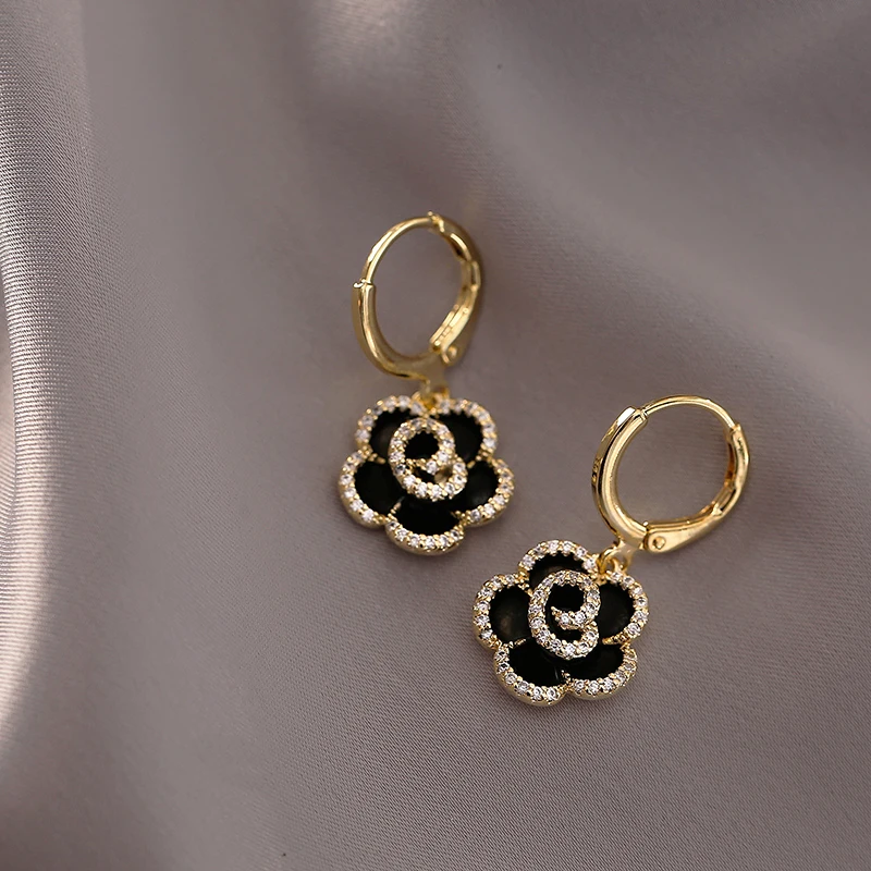 Design Sense Exquisite Black Camellia Pendant Flower Earrings 2025 New Jewelry Party Girls' Luxury Accessories For Women's Gift