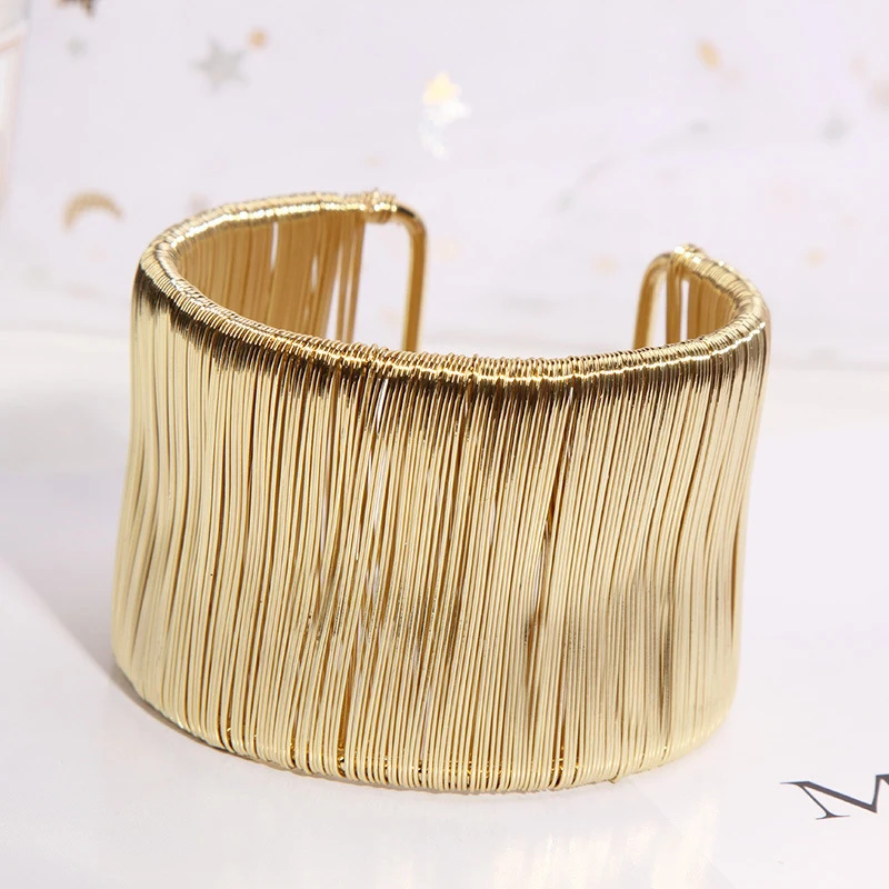 Fashion Open Cuff Women Bracelet Bangle Punk Metal Wire String Adjustable Vintage Exaggerated Gold Silver Color Jewelry Bangles
