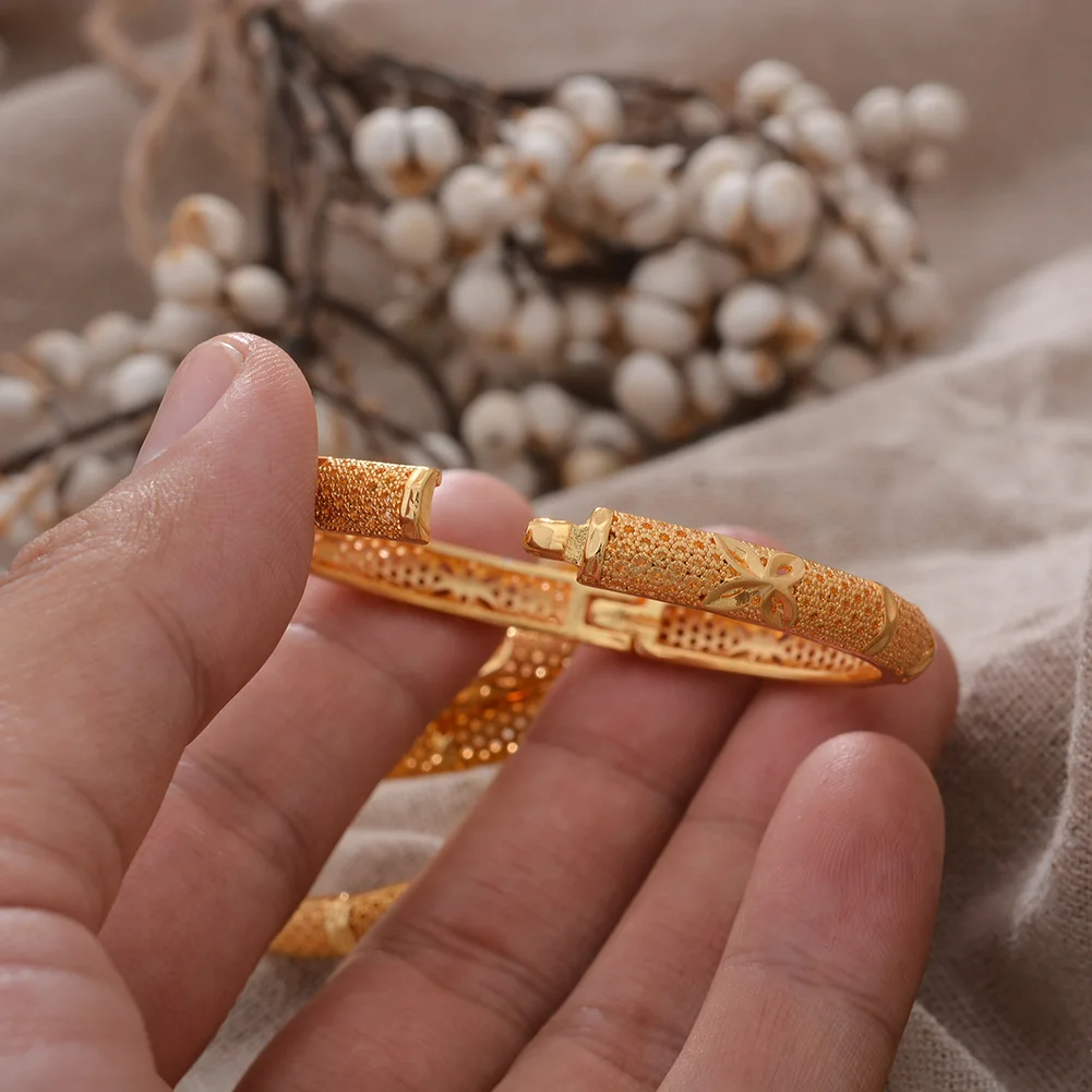 These classic gold-plated bangles make a great gift for birthdays, baby showers, or christenings, and can be worn daily as a stylish accessory.