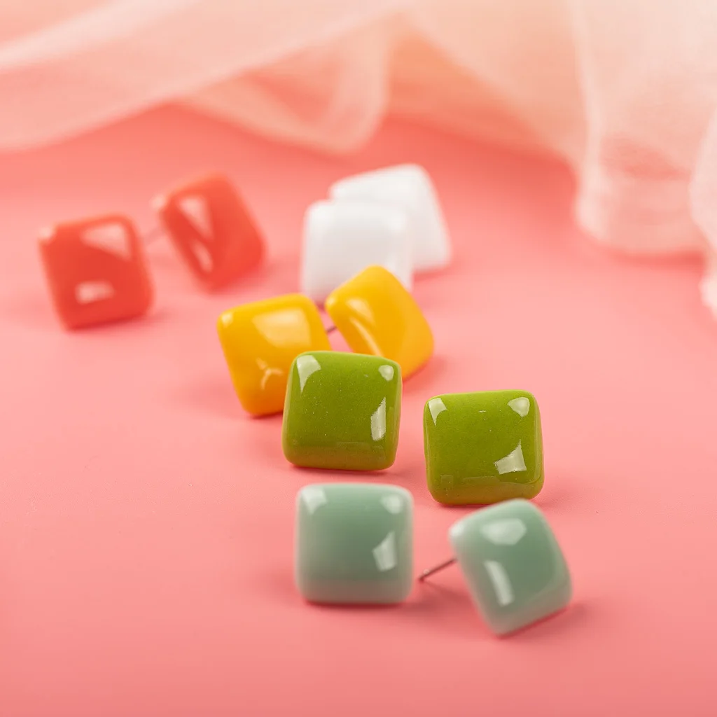 Name:Geometric square multicolor abstract ceramic earrings fashion gift jewelry wholesale for women girl
