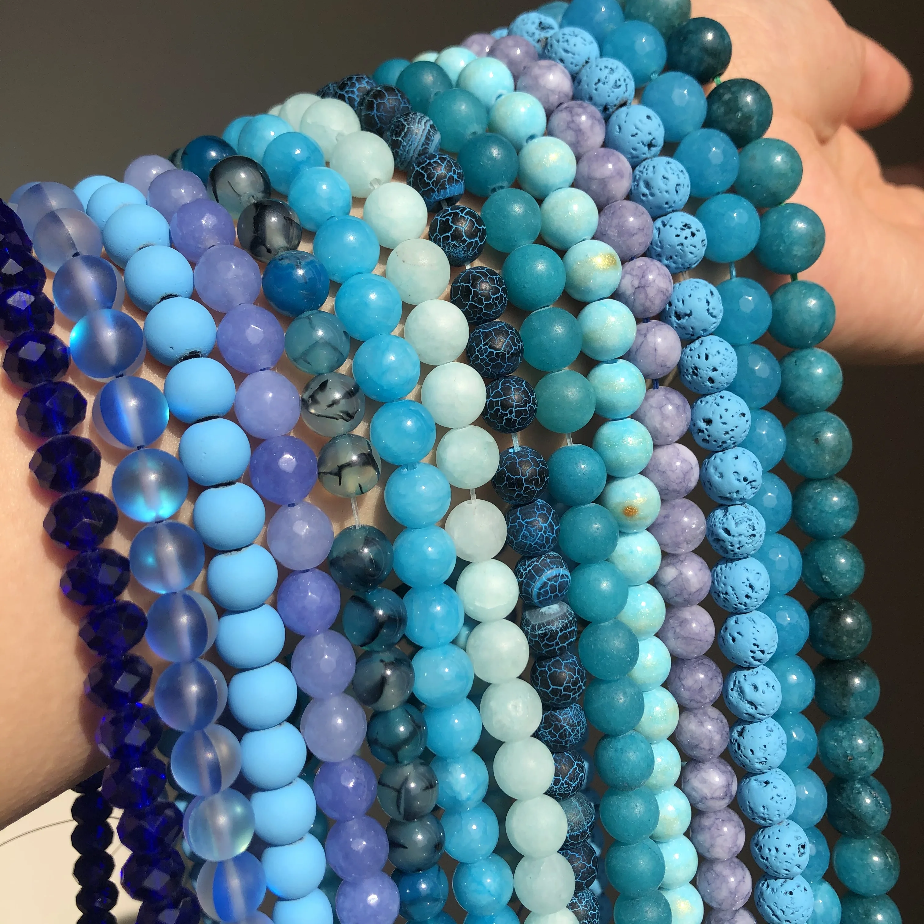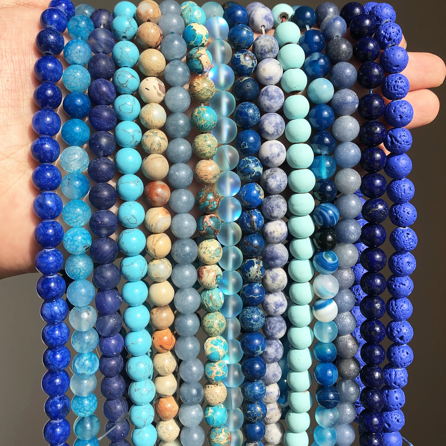 Natural Stone Blue Turquoises Agates Tiger Eye Lapis Lazuli Amazonite Round Beads For Jewelry Making DIY Bracelet Accessories