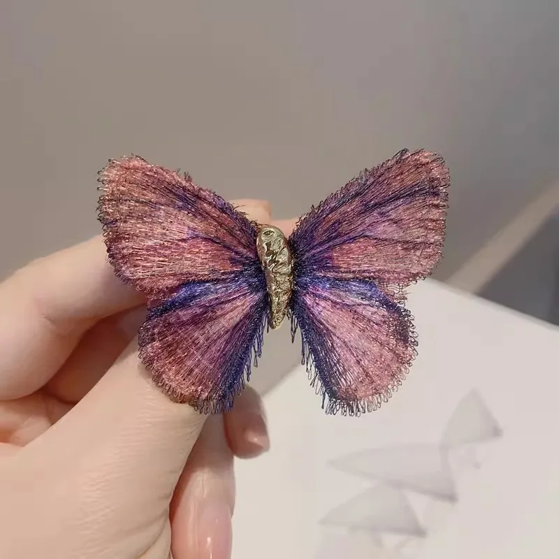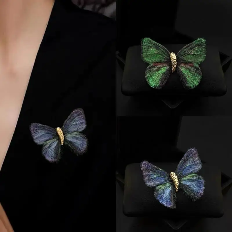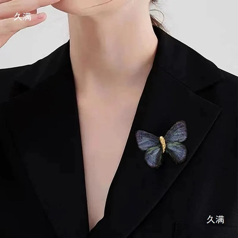 New Gradient Embroidered Butterfly Chest Flower Vintage Brooch For Women Unisex Exquisite Clothing Bag Accessories Pins Jewelry