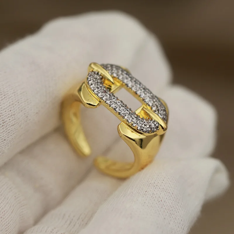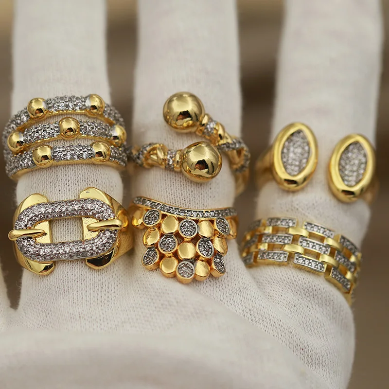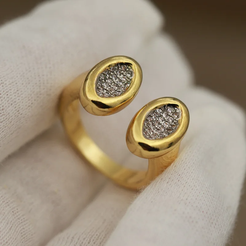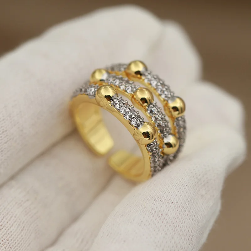 New Sight Accessories Zirconia Metal Beads Open Rings for Women Luxury Crystal Waterdrop Wedding Engagement Rings