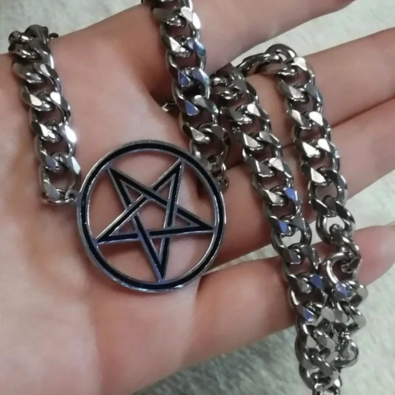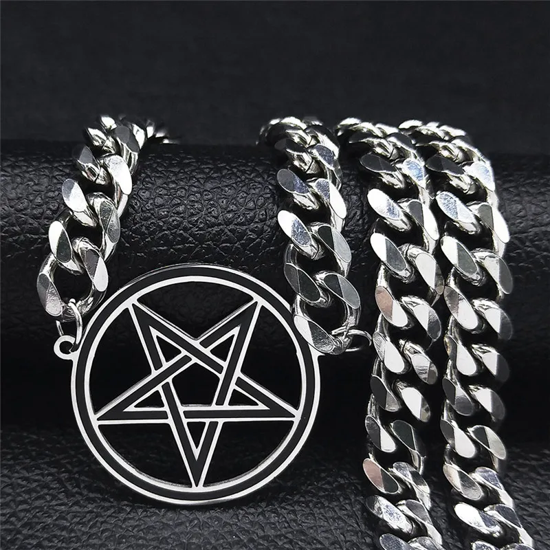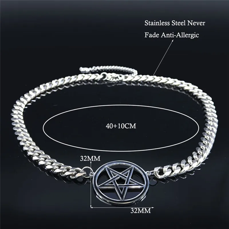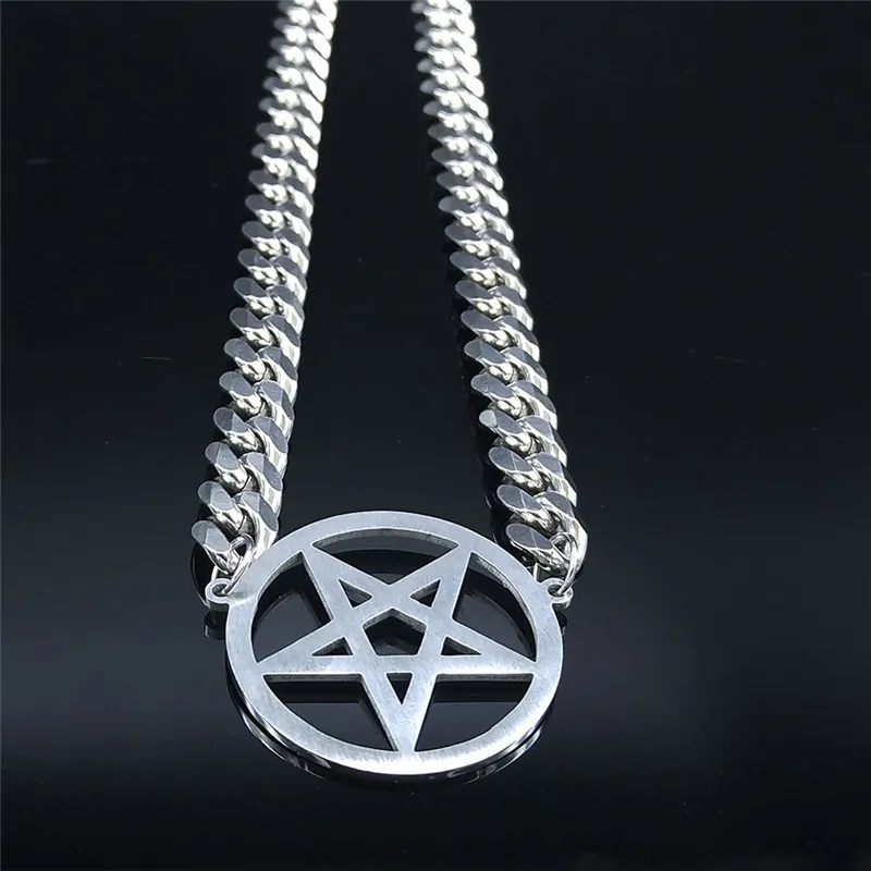 Punk Pentacle Inverted Pentagram Necklace for Men Clavicle Cuban Chain Stainless Steel Choker Necklaces Satan Satan Jewelry