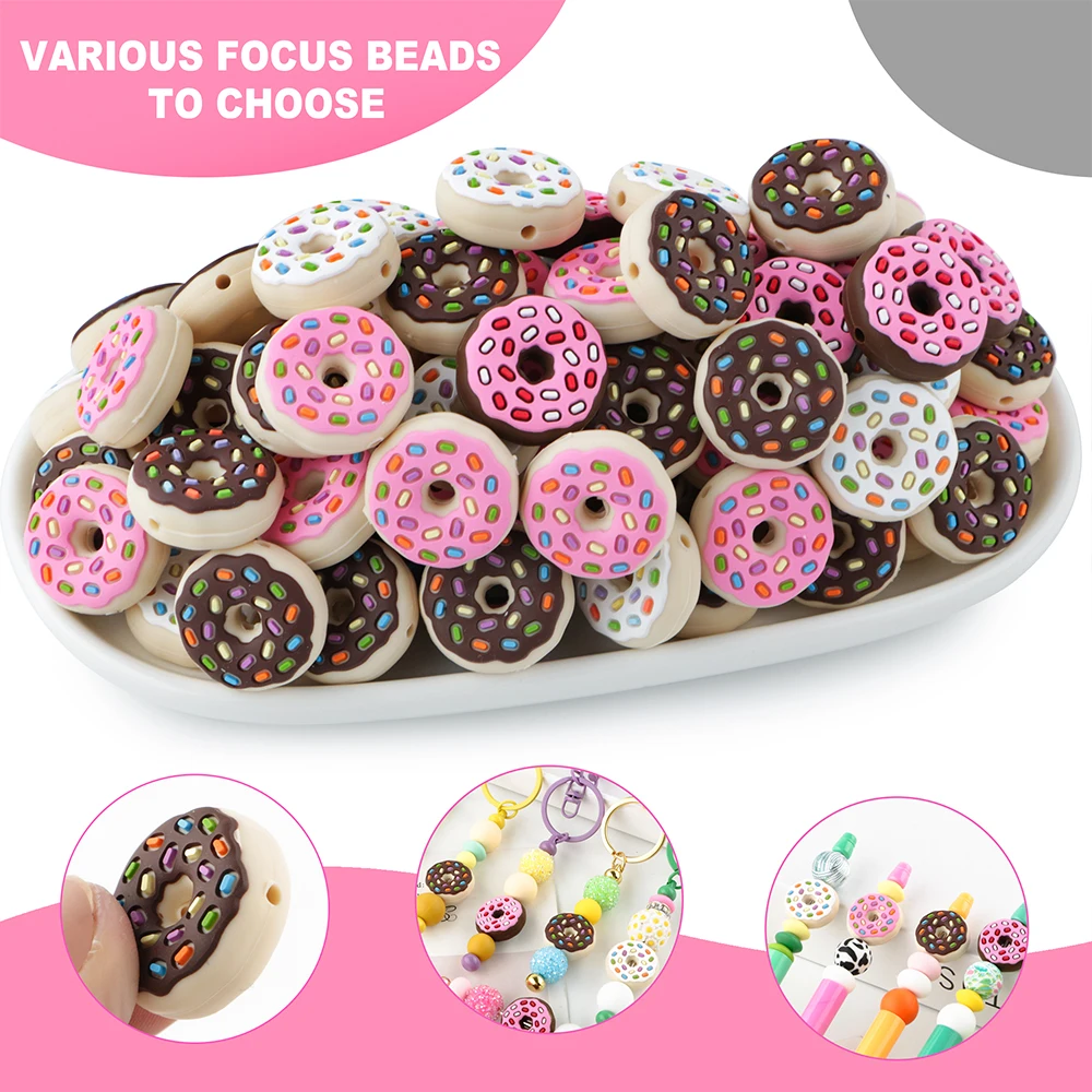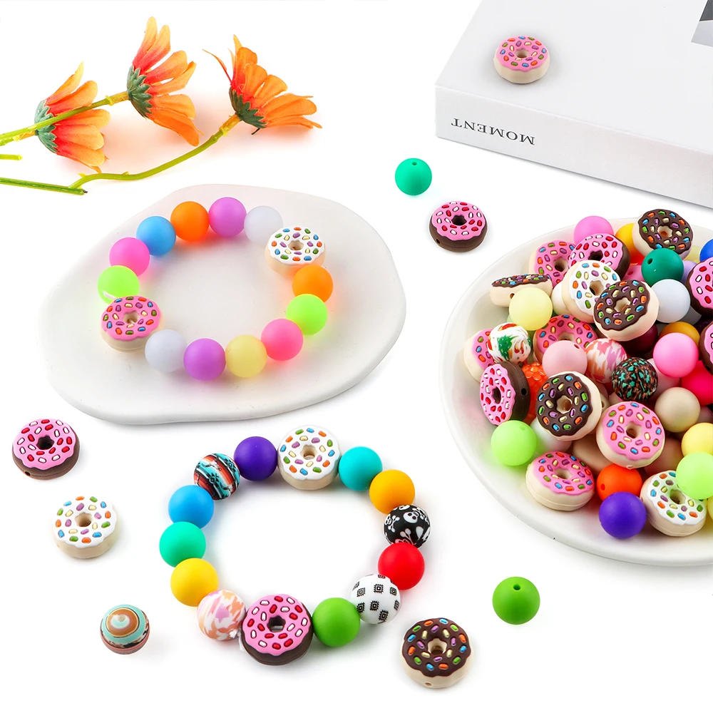 Sunrony New 6Pcs Donut Fruits Cake Silicone Focal Beads DIY Pen Keychain Bracelets Necklace Accessories For Jewelry Making
