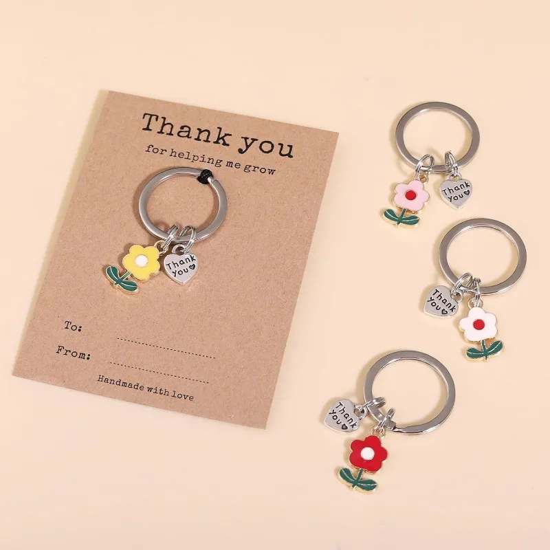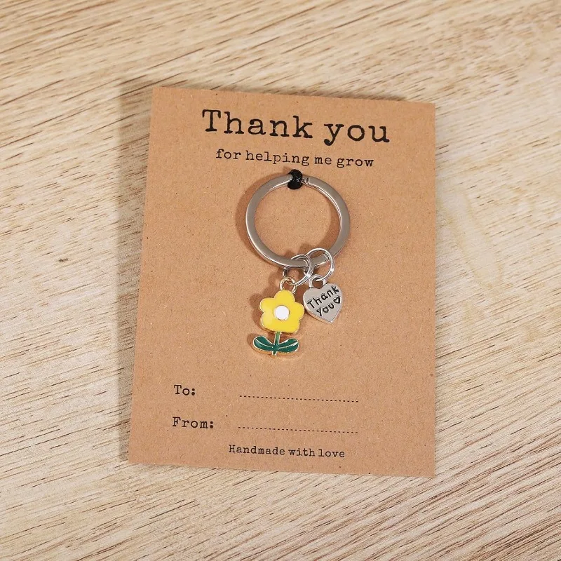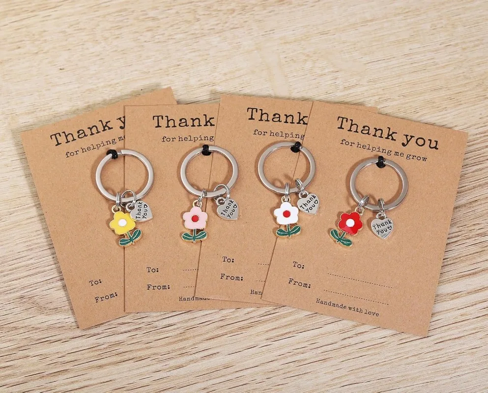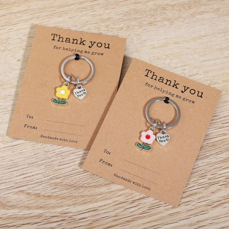 Teacher Appreciation Keychain Gifts in Bulk Teacher Day Christmas Gift Thank You for Helping Me Grow Key Chains with Card