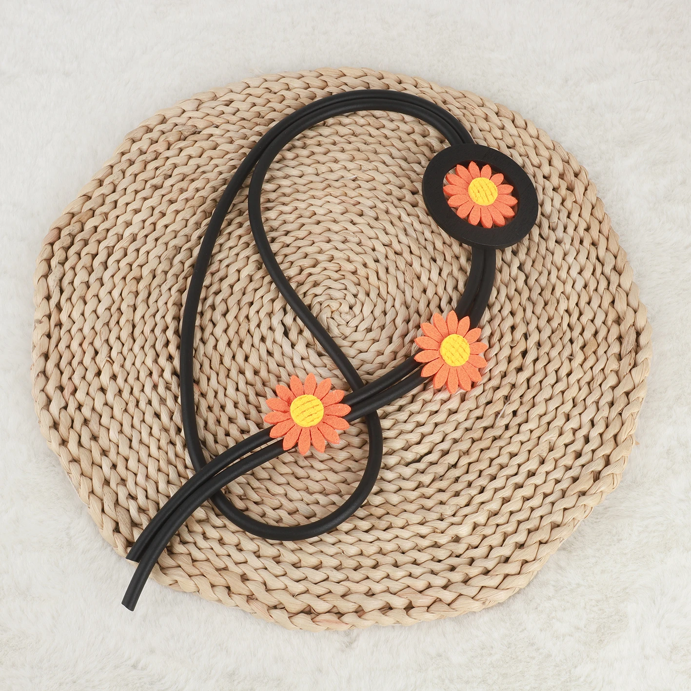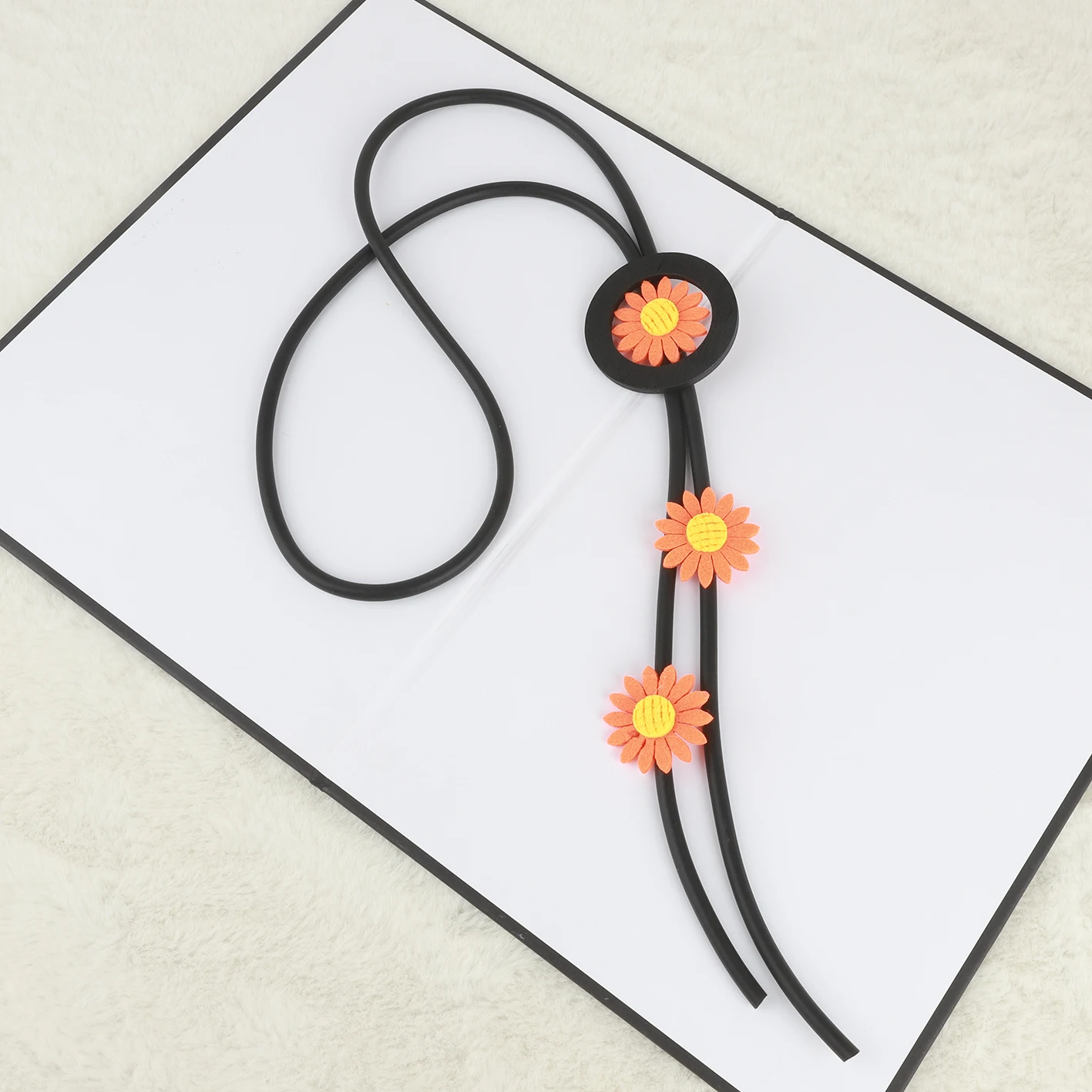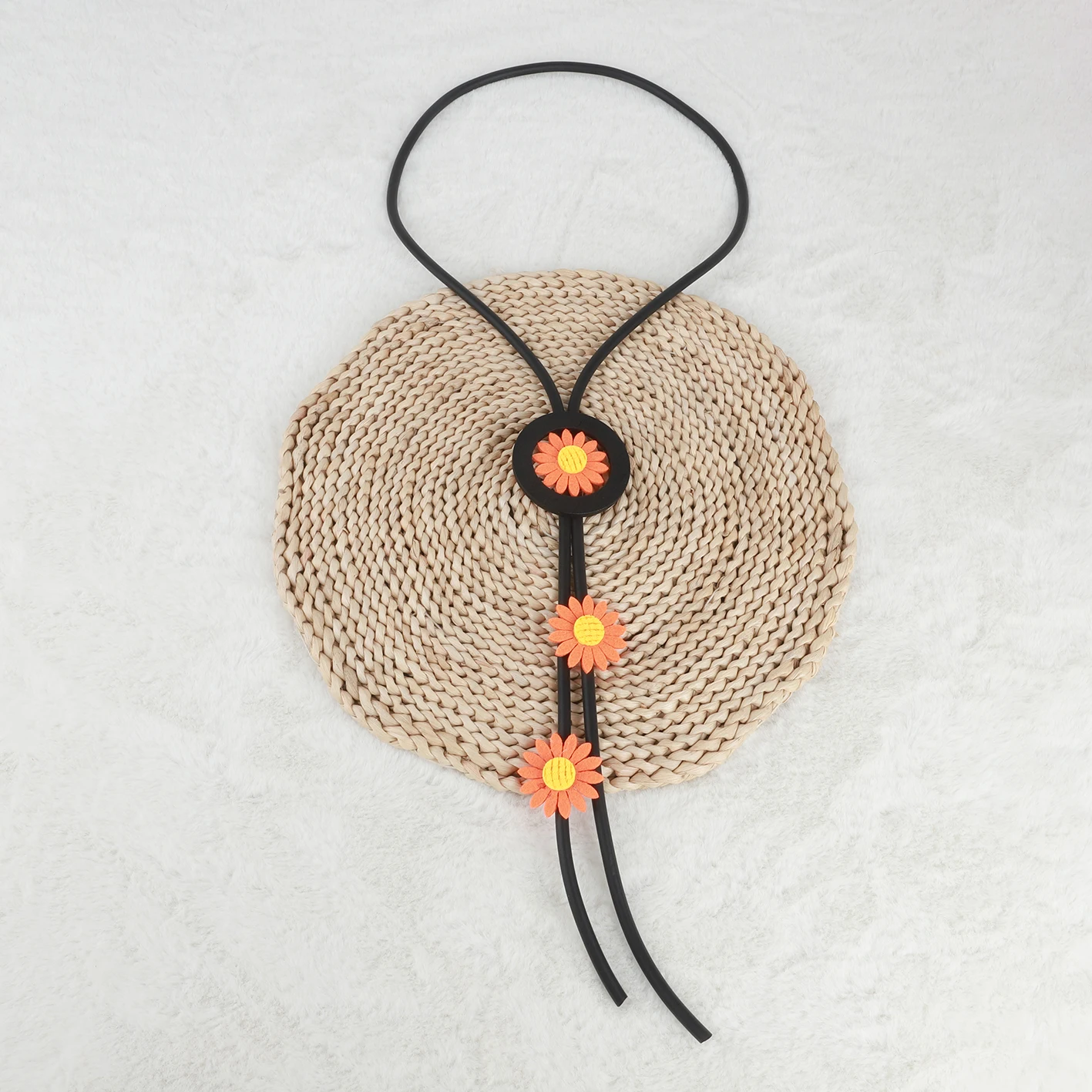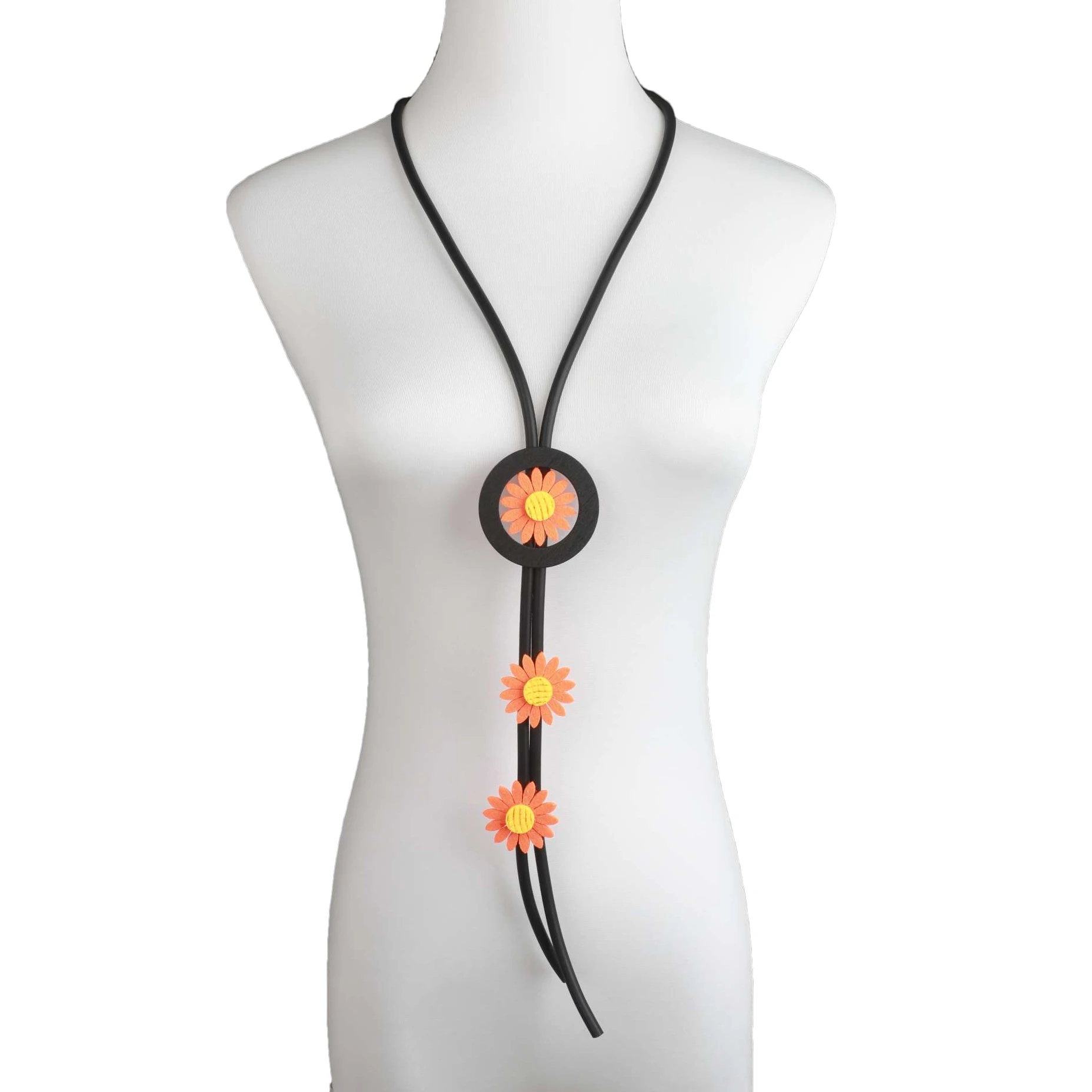 UKEBAY New Handmade Ethnic Style Orange Flower Design Black Rubber Chain Bohemian Style Women Jewelry Long Necklace Retro Chain