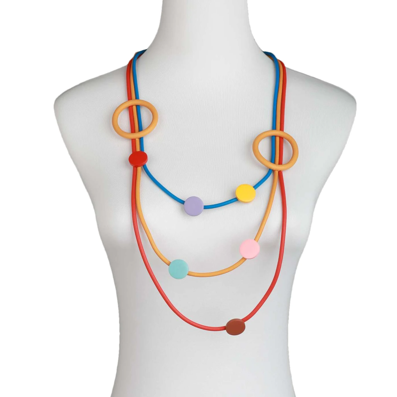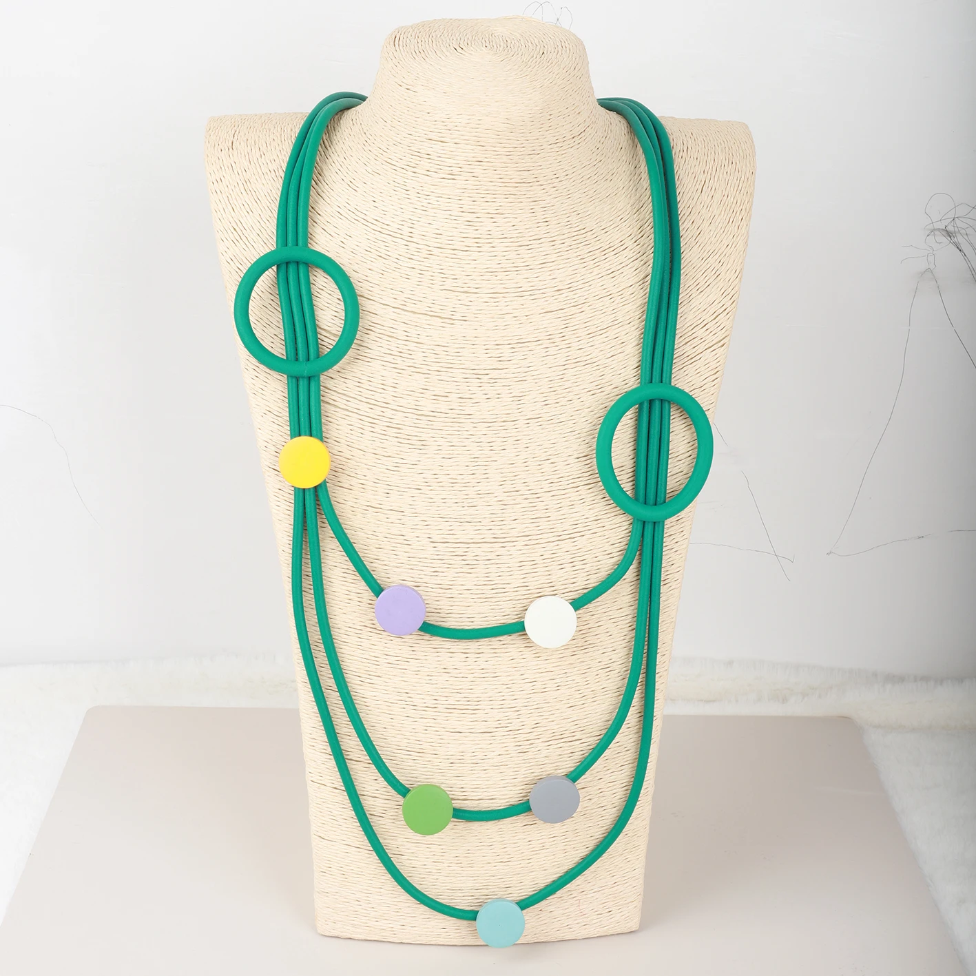 UKEBAY New Handmade Gothic Multi-color Disc Wood Accessories Rubber Chain Three-color Optional Women Jewelry Collar Necklace