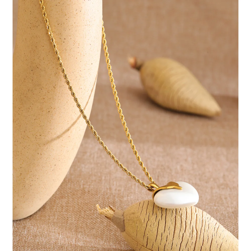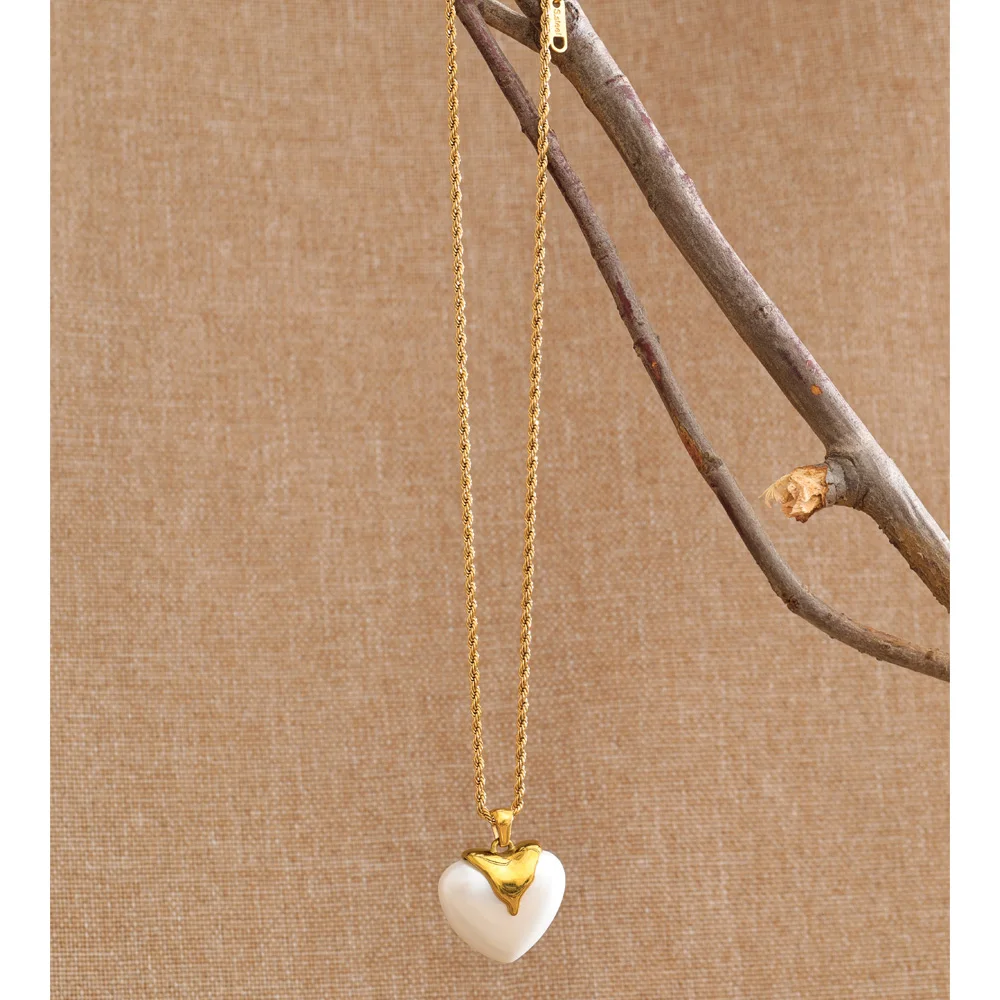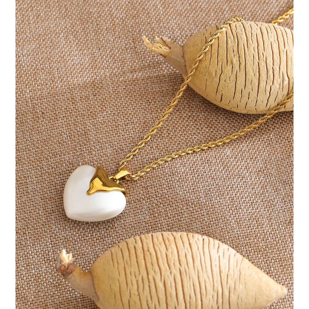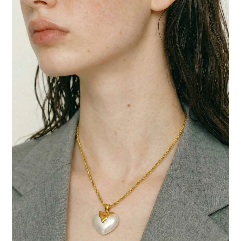 Yhpup Stainless Steel Imitation Pearls Heart Pendant Necklace for Women Elegance Popular Chic Romantic Korean Jewelry Gift