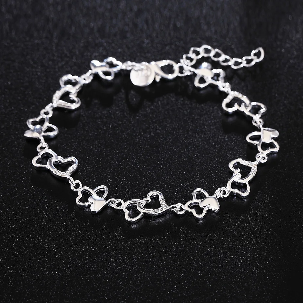 925 Sterling Silver Bracelet for women bracelet HEART lovely FLOWER chain fashion Wedding Party cute lady nice jewelry