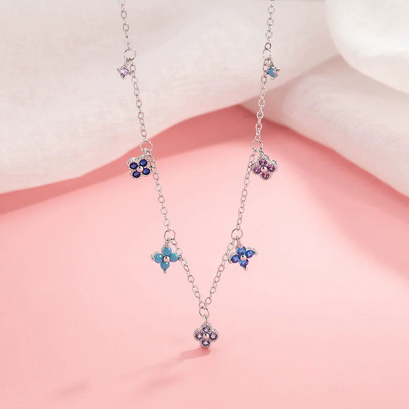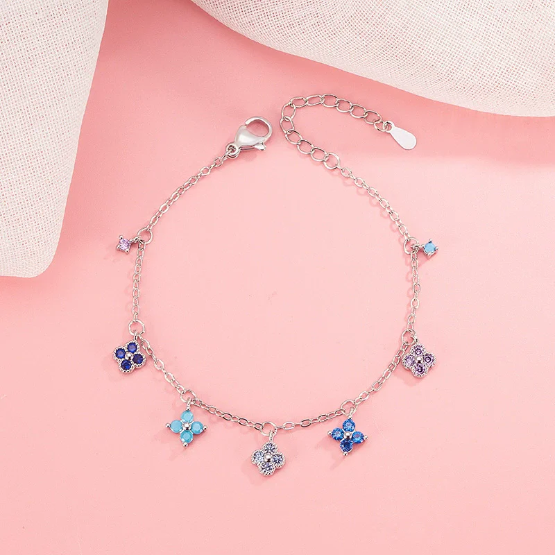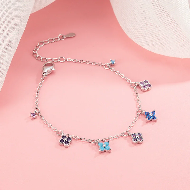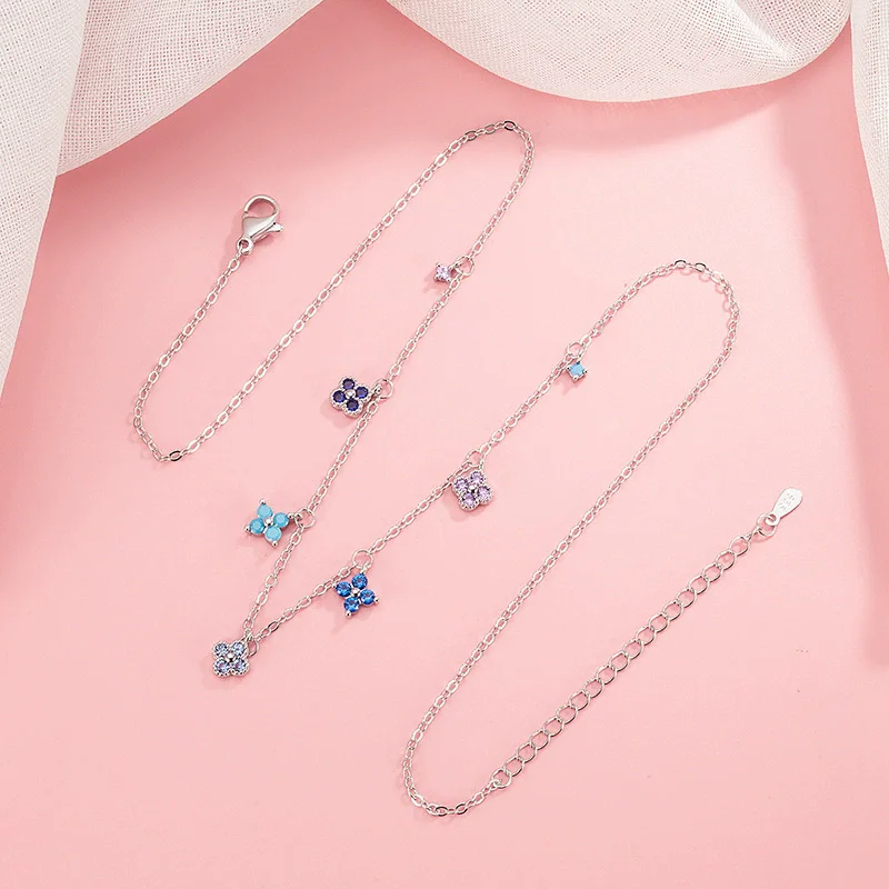 925 Sterling Silver New Multicolored Four-Leaf Clover Sparkle Diamond Bracelet and Anklet for Women Necklace Accessories Gift