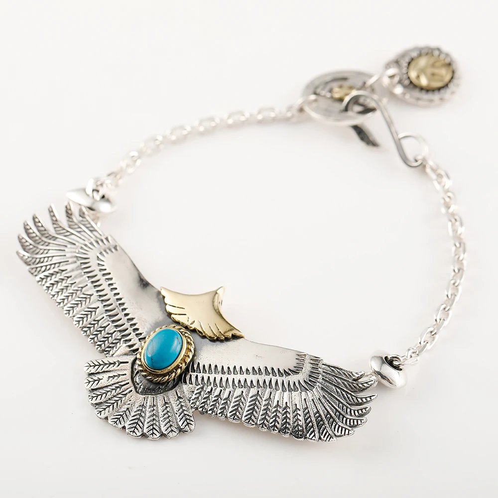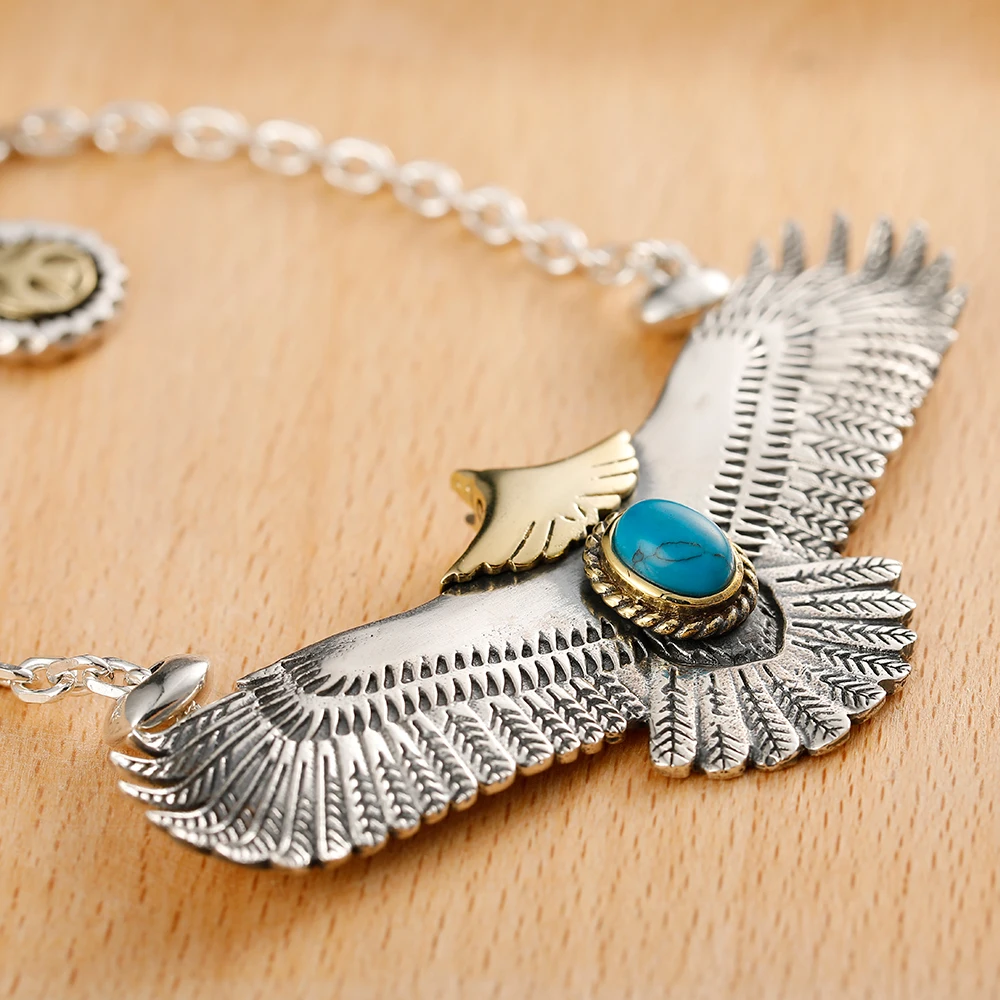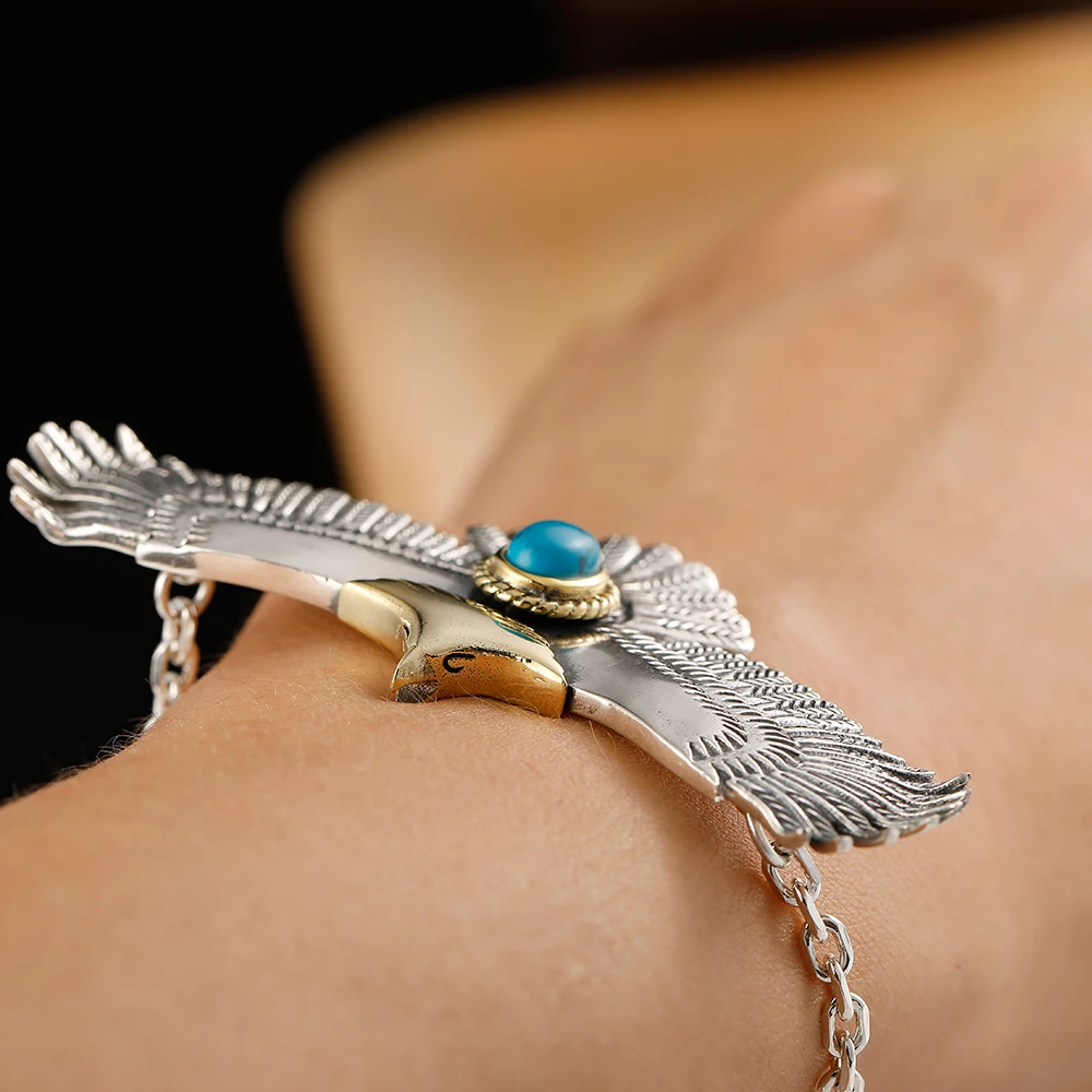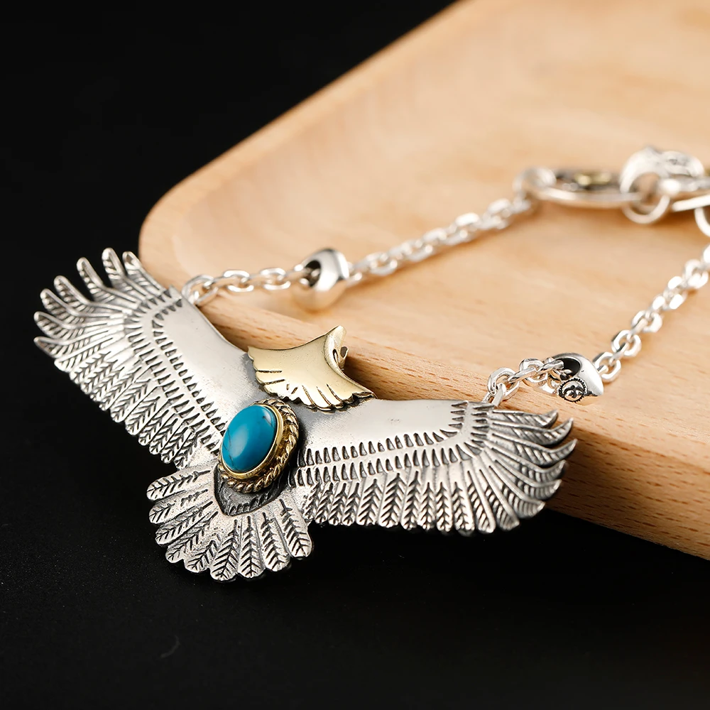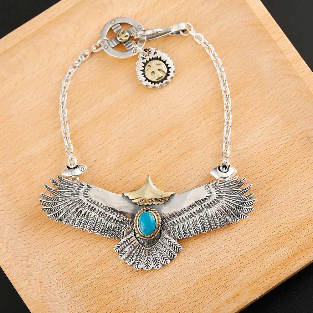 Goros Eagle Jewelry Bracelet Silver 925 Blue Turquoise Male Bracelets For Men Vintage Man Fine Accessories