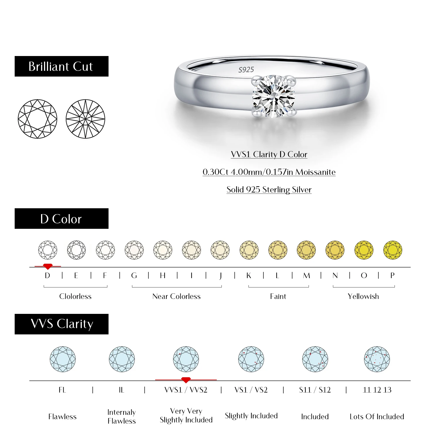 MODIAN D Color Round Moissanite Rings 925 Sterling Silver Fashion Simple Ring For Women Wedding Statement Jewelry Gifts