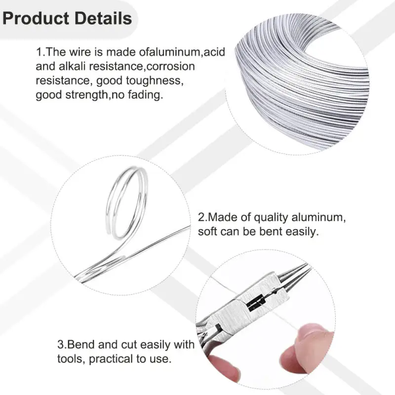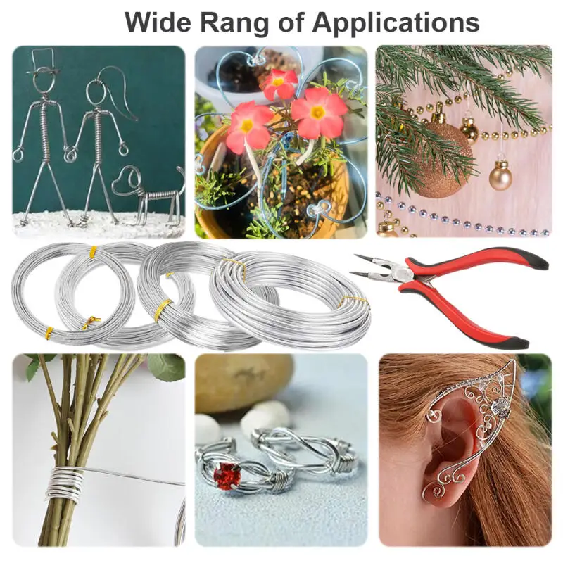 0.8mm-1.4mm Silve Aluminum Wire 50M(164 Feet) Bendable Metal Wire for Crafts,Sculpting,Armature,Accessories Making+1 Pliers