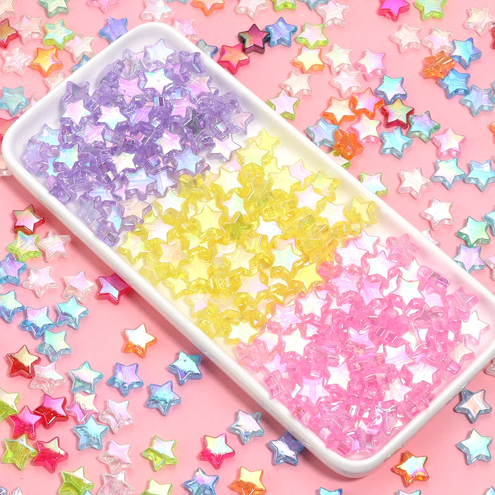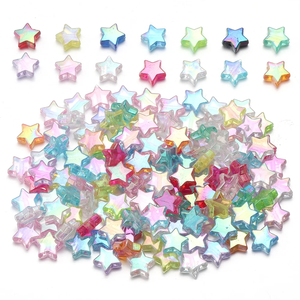 100pcs Acrylic Pentagram Beads AB Plating Loose Spacer Beads Five Pointed Star Beads For Jewelry Making DIY Bracelet Accessories