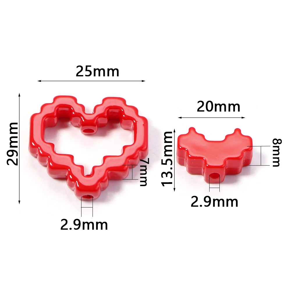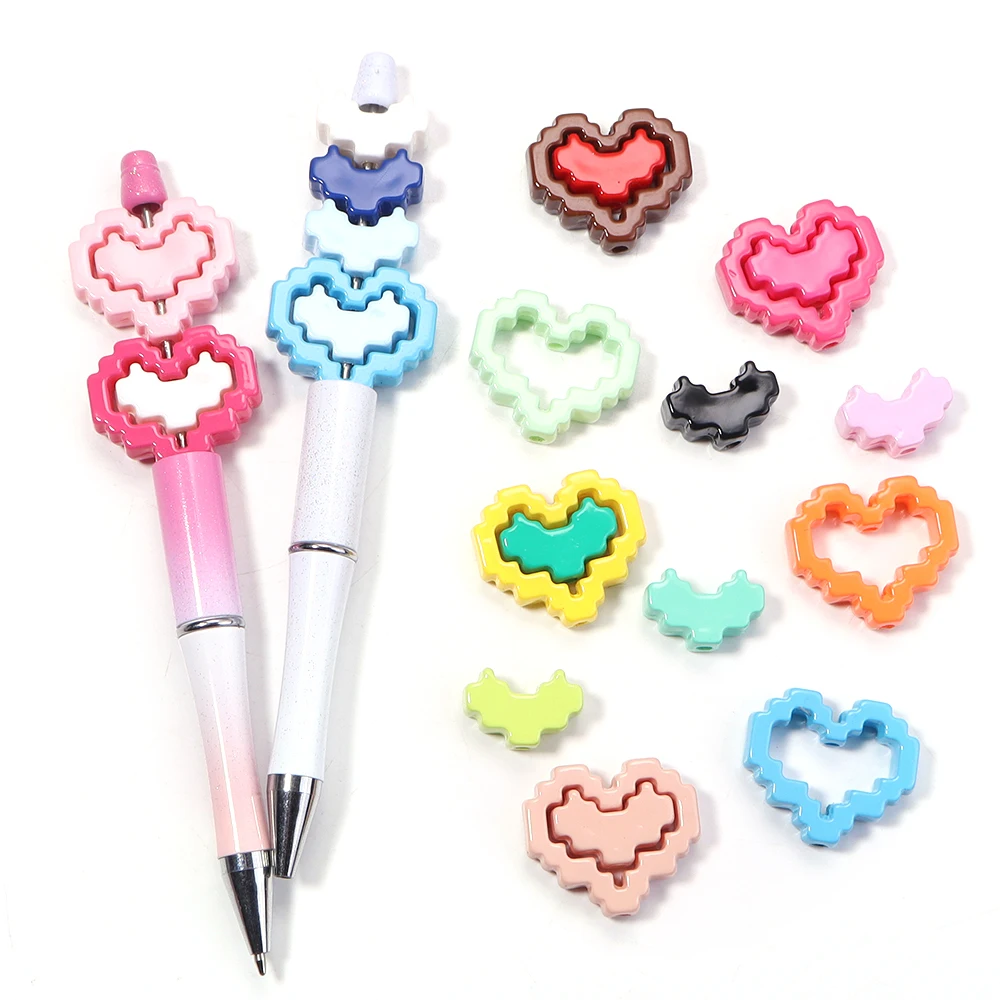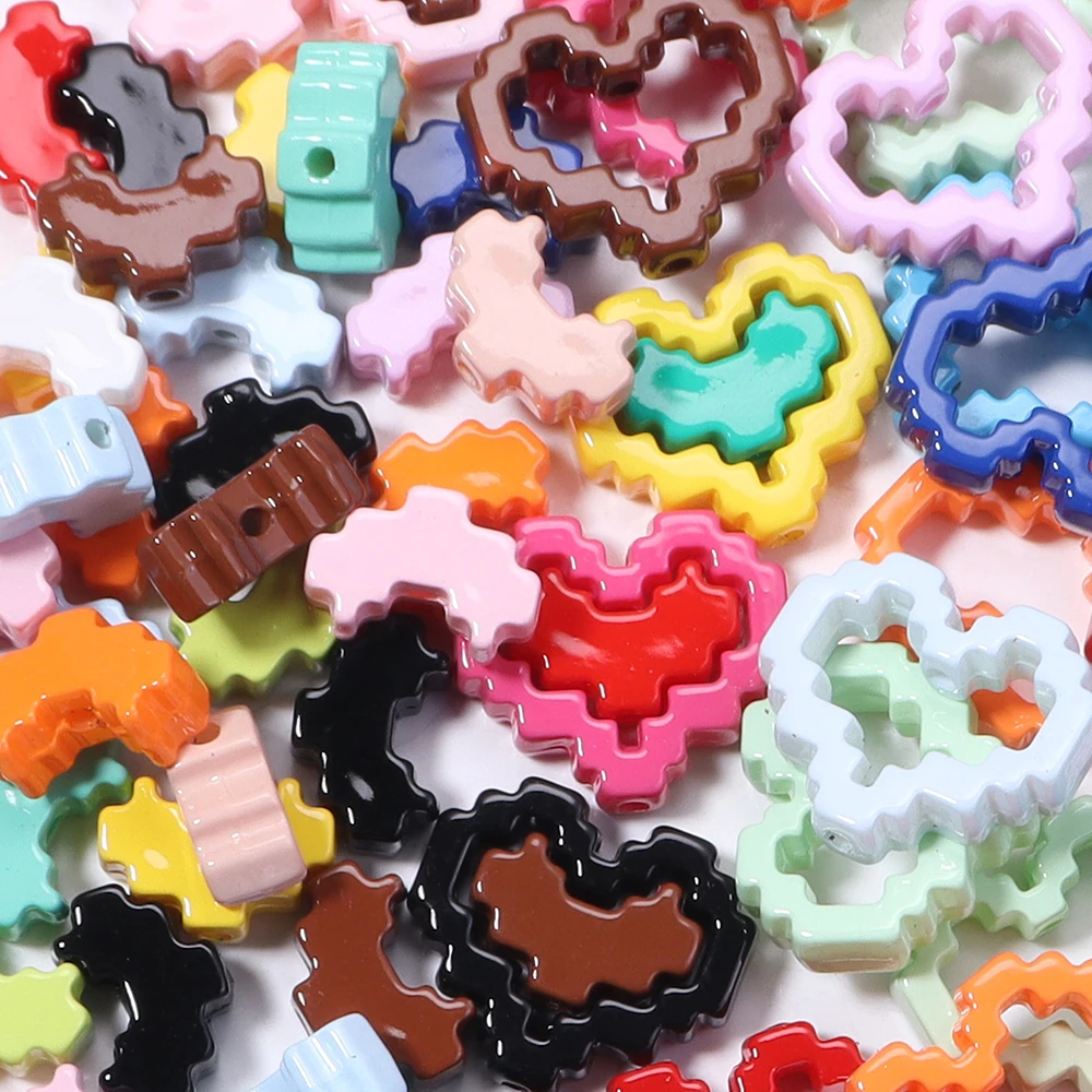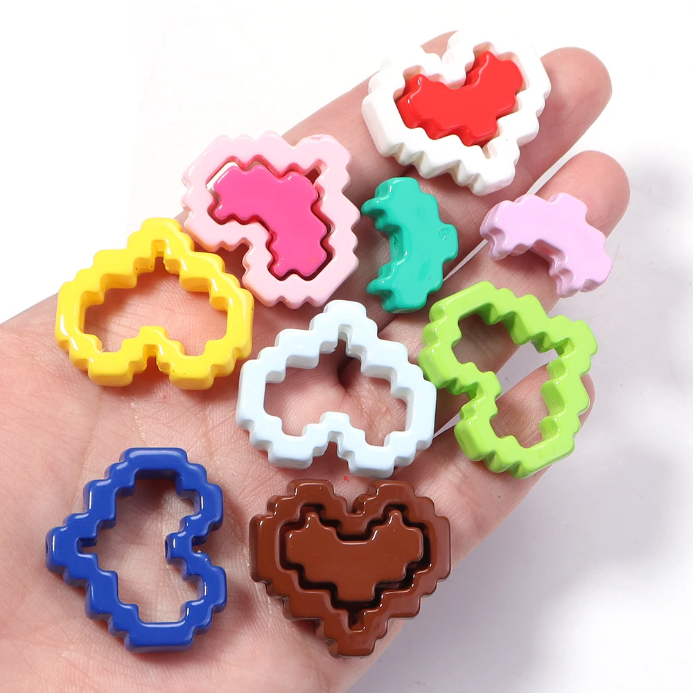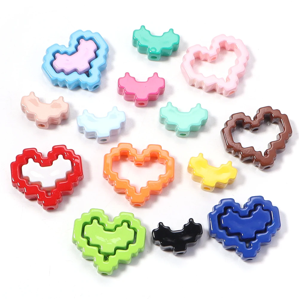 10pcs Acrylic Solid Color Baking Paint Pixel Heart-shaped Frame Bead DIY Phone Chain Keychain Material Jewelry Accessories