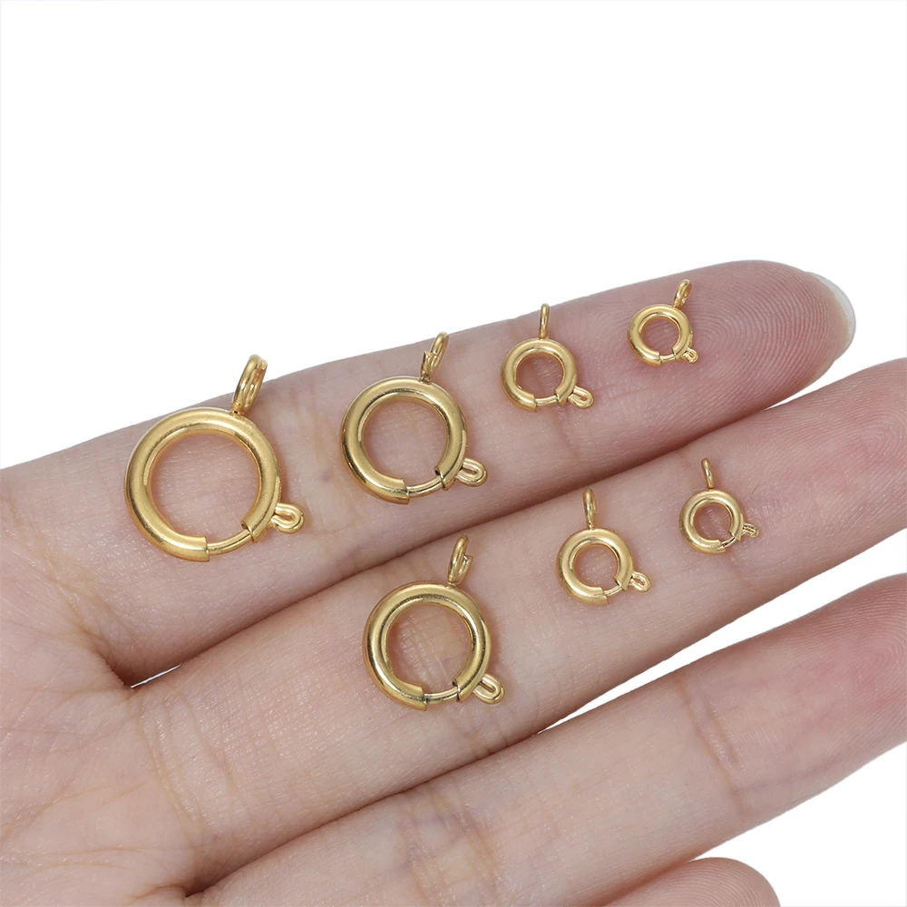 10Pcs Stainless Steel 5/6/8/10/12MM Round Claw Spring Clasps Hooks for Jewelry DIY Bracelet Necklace Connectors Supplies