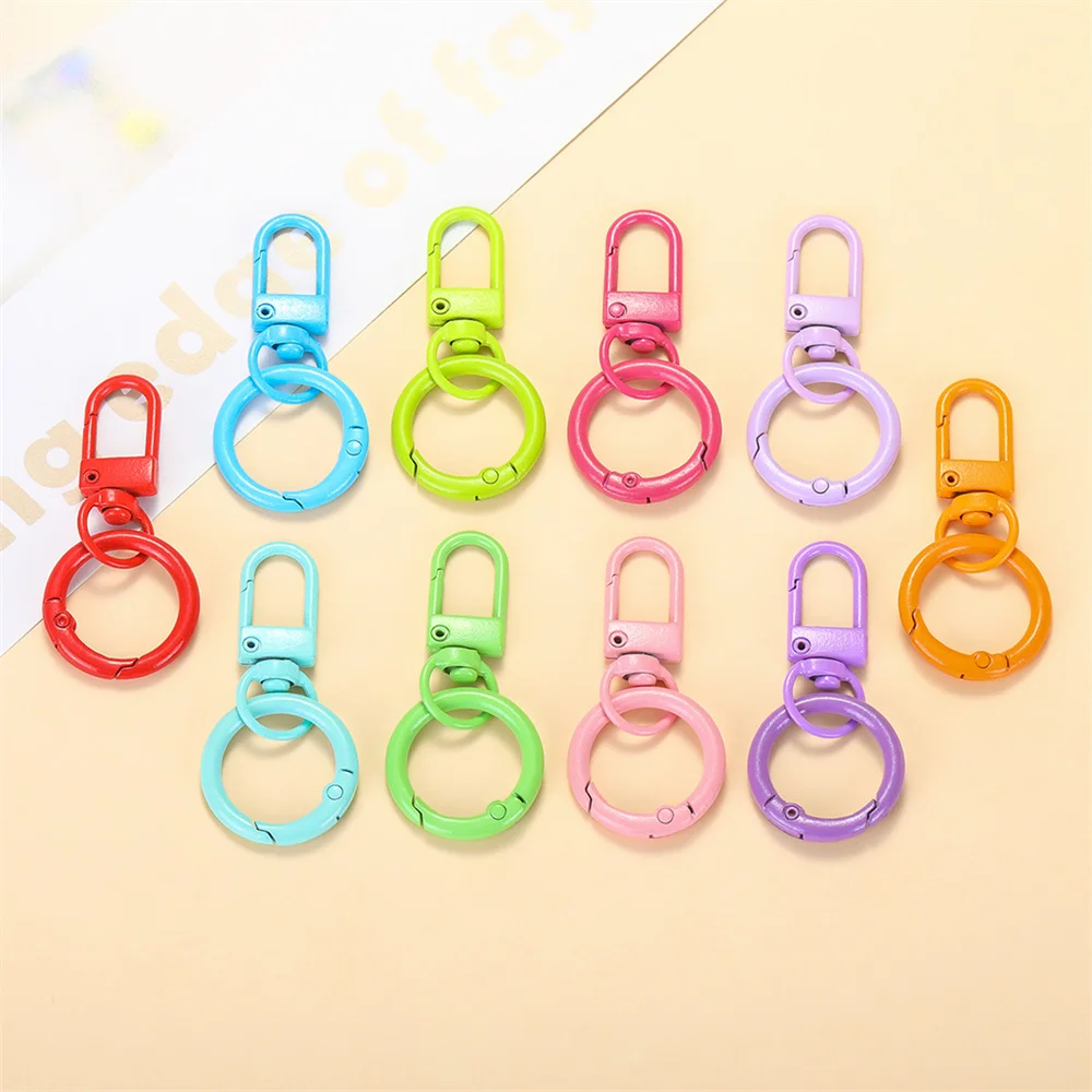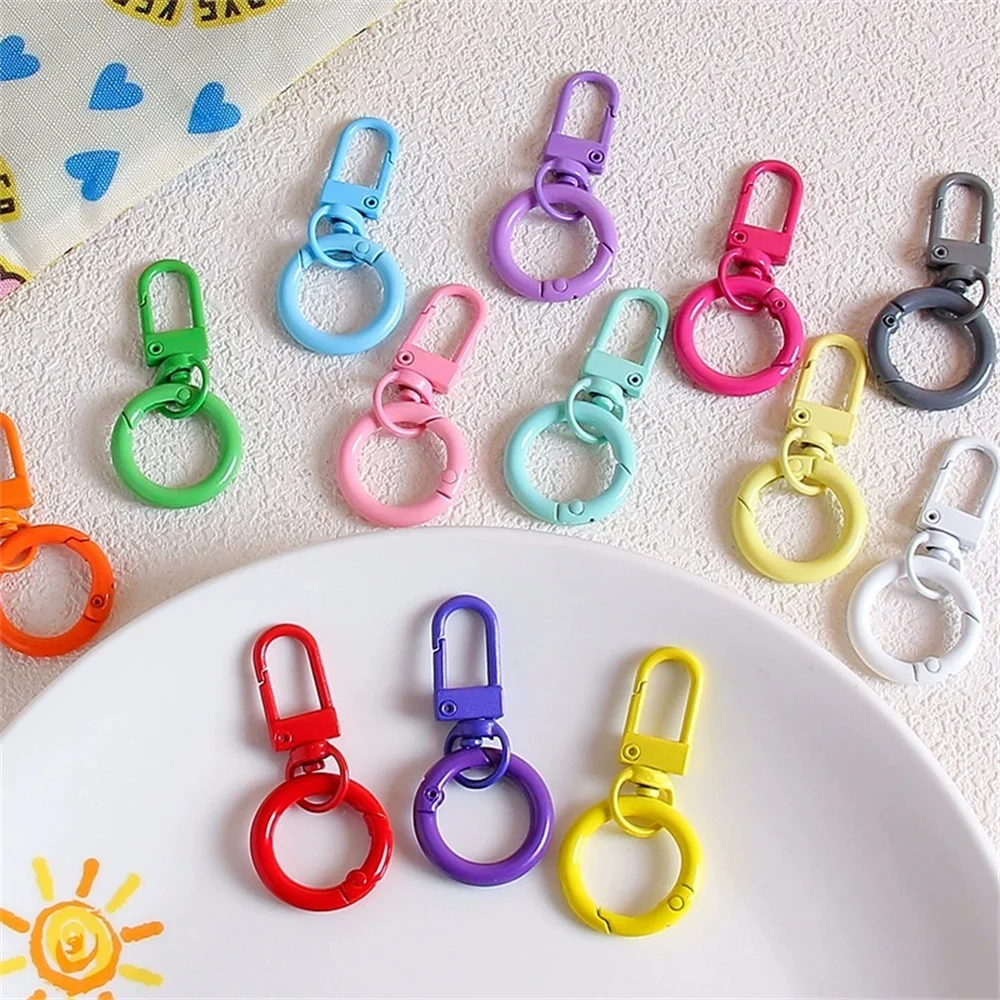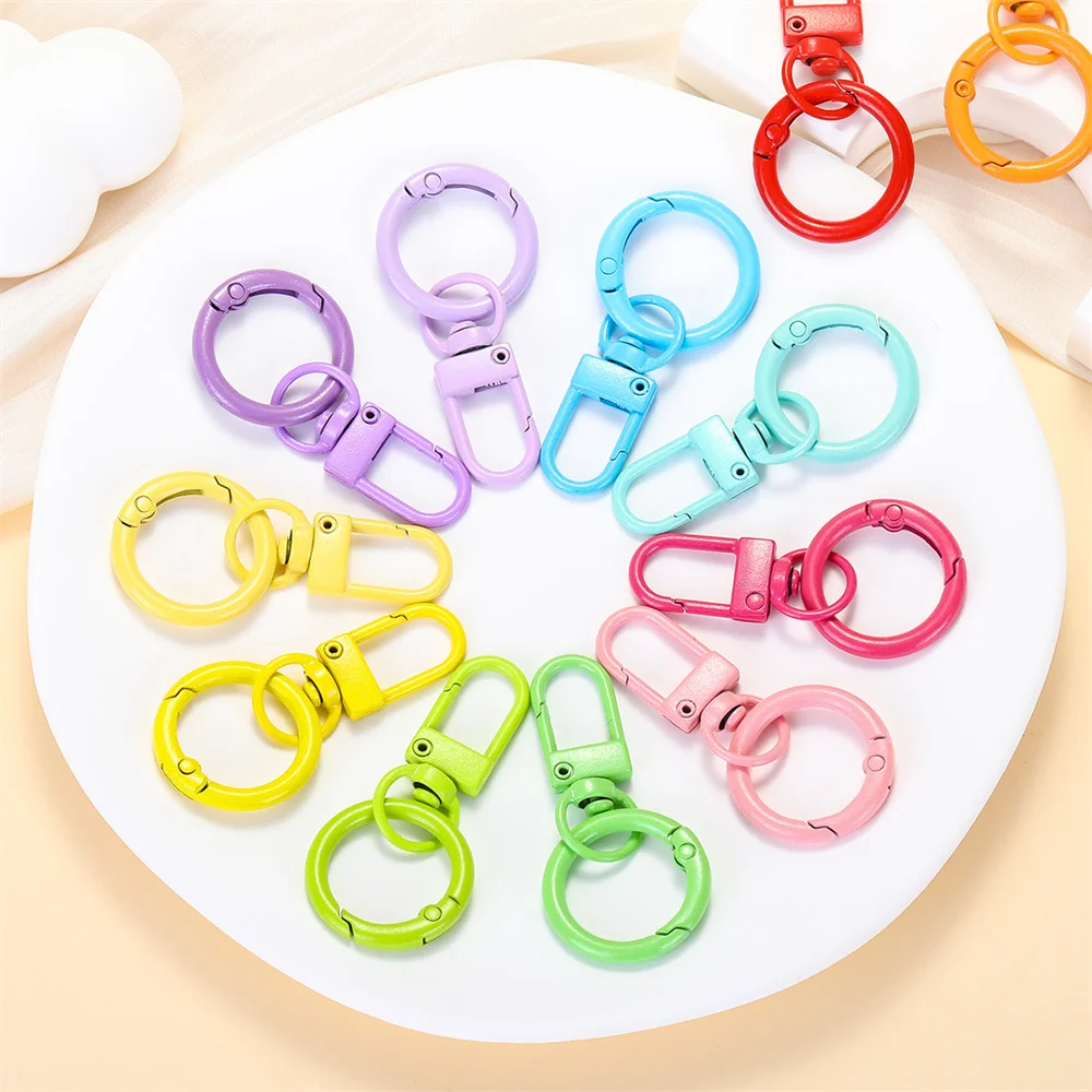 5/10/30pcs Keyring Lobster Clasp Spring Buckle With Buckle Colored Keychains For DIY Jewelry Making Key Ring Hooks Bags Buckle